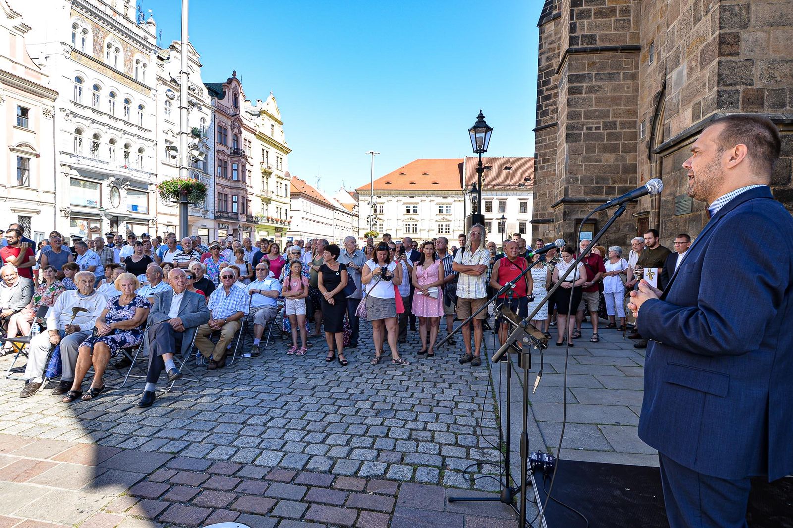 Město Plzeň nechalo na centrálním náměstí Republiky osadit bronzovou desku připomínající 21. srpen 1968, tedy den, kdy Československo obsadila vojska zemí Varšavské smlouvy. Její zhotovení a instalace vznikly na základě podnětů veřejnosti. Desku 21. srpna 2020 slavnostně odhalil plzeňský primátor Martin Baxa v přítomnosti plzeňského biskupa Tomáše Holuba a dalších hostů. U pamětní desky je po dobu jednoho týdne nainstalován informační panel, na němž jsou umístěny dobové fotografie doplněné vysvětlujícím textem.