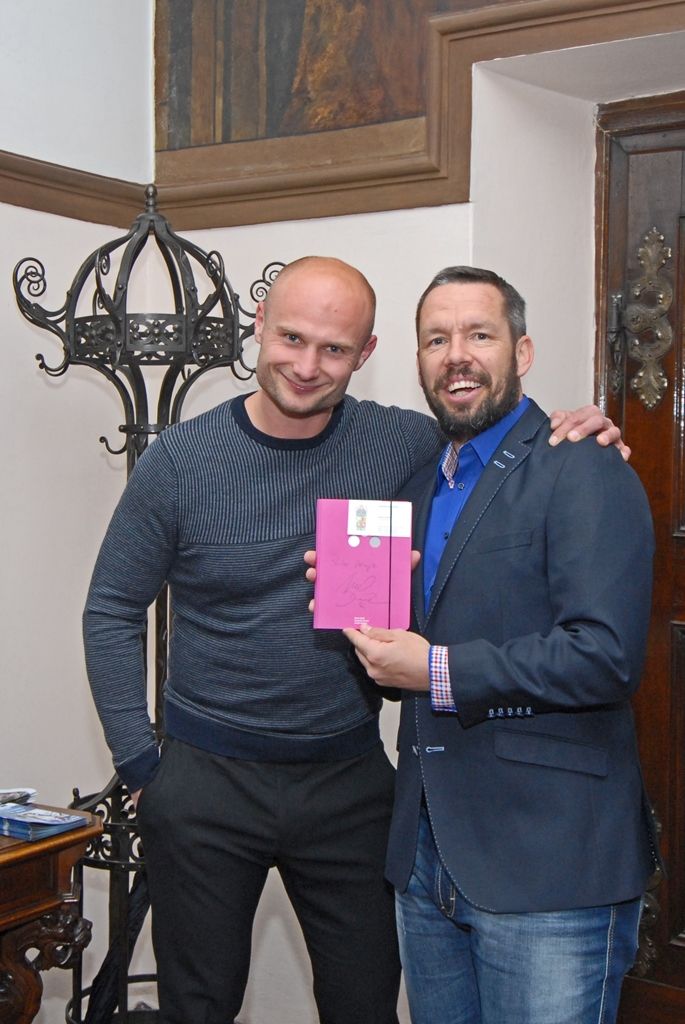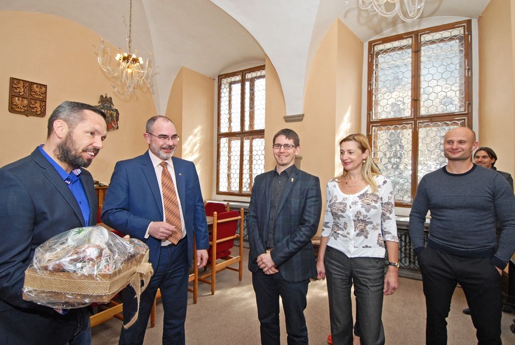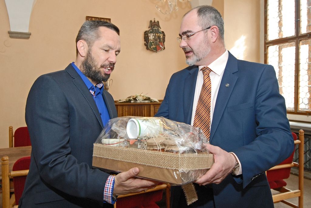 Pavel Horváth dostal dárek od vedení města, pochutiny od místních farmářů