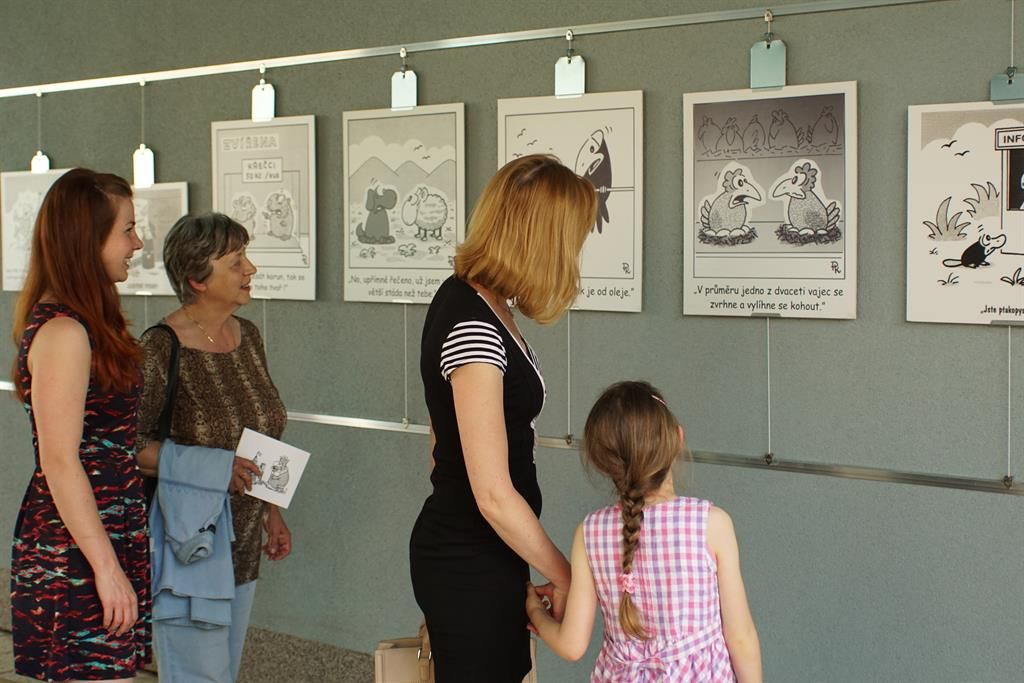 Na výstavě je k vidění okolo 90 zvětšenin kreslených vtipů ze všech období jeho práce. Otevřena bude do 30. června vždy od 10 do 18 hodin ve všední dny, o víkendech od 14 do 17 hodin. Vstup na výstavu je zdarma, do atria gymnázia se vchází z centrálního parku U bazénu na Lochotíně.