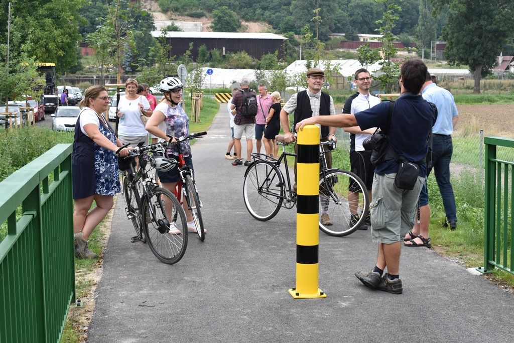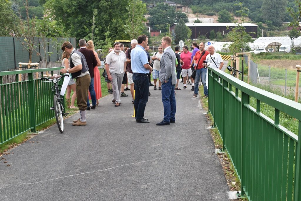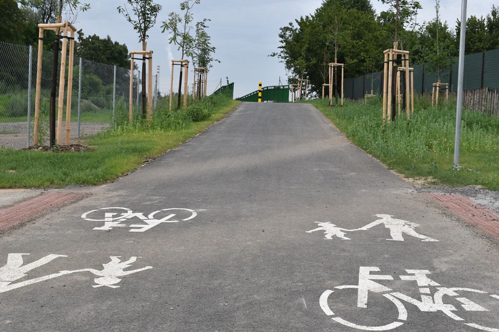 „Nová komunikace spojuje Radčickou ulici v prostoru křižovatky u zoologické zahrady s místní komunikací neboli polní cestou vedoucí z Předních Skvrňan do Radčic. Nový úsek cyklostezky je 401 metrů dlouhý, lávka měří 29,9 metru,“ řekl technický náměstek primátora Pavel Šindelář. Za město měl projekt na starost magistrátní odbor investic.