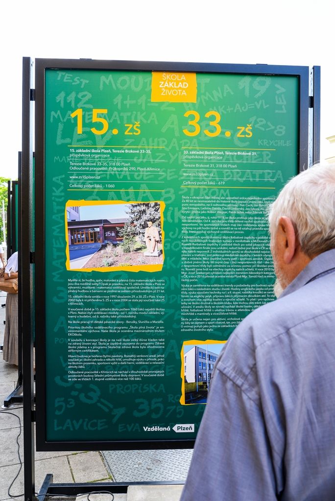 Město Plzeň prezentuje unikátní formou svých 26 základních škol, které navštěvuje více než 14 tisíc žáků. Veškerá školská zařízení včetně dvou samostatných školních jídelen poprvé představuje na celkem deseti venkovních výstavních panelech umístěných v Riegrově ulici. Expozice nazvaná Škola základ života je k vidění až do pátku 29. června. Záštitu nad výstavou udělila náměstkyně primátora pro oblast školství a sociálních věcí Eva Herinková.