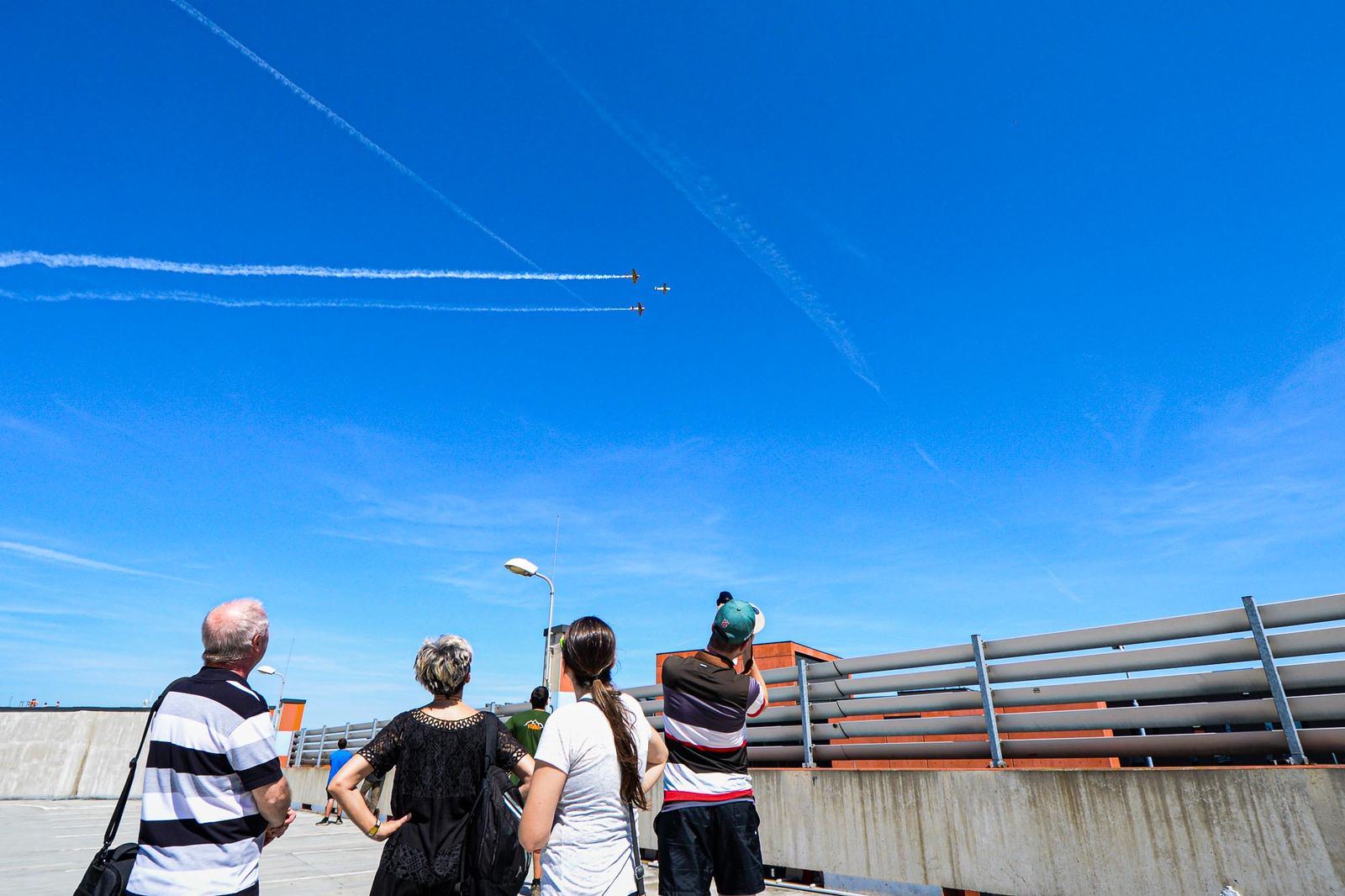 Díky pěknému počasí byla velkým zážitkem nedělní letecká podívaná. Nad hlavami Plzeňanů během hodiny prolétly historické stroje Pilatus a dva letouny Harvard. Armáda České republiky nasadila záchranářský vrtulník Sokol, bohužel z důvodu plnění mimořádných úkolů nemohly nad Plzní přeletět Gripeny, americkou armádu zastoupil vojenský čtyřmotorový turbovrtulový transportní letoun C 130 Hercules. Ze studia přelety letounů moderoval vojenský přidělenec při ambasádě USA v ČR col. Sean Cantrell, mjr. Petr Šafařík, náčelník odd. bojové přípravy 24. základny dopravního letectva AČR, historické přelety komentoval Adolf Valášek.