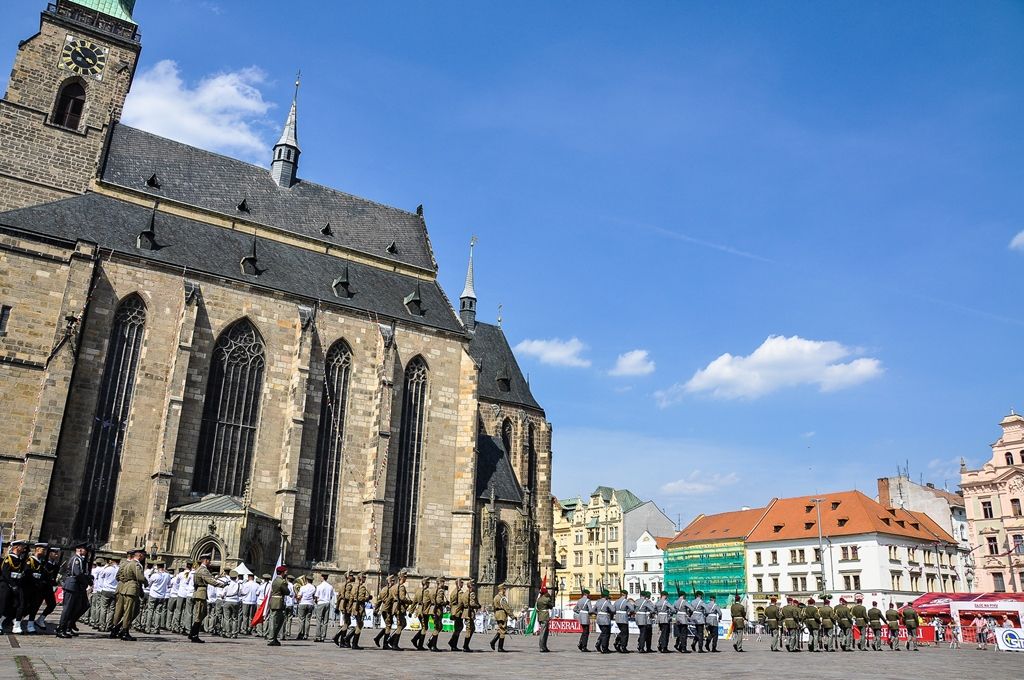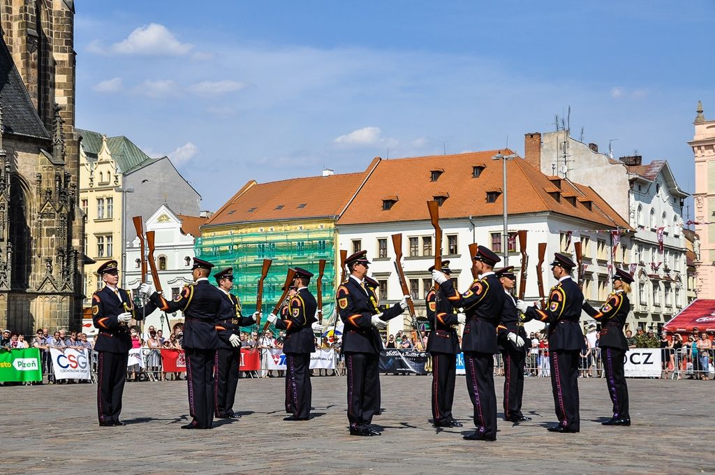 Plzeň poprvé zažila exhibiční přehlídku čestných stráží středoevropského regionu