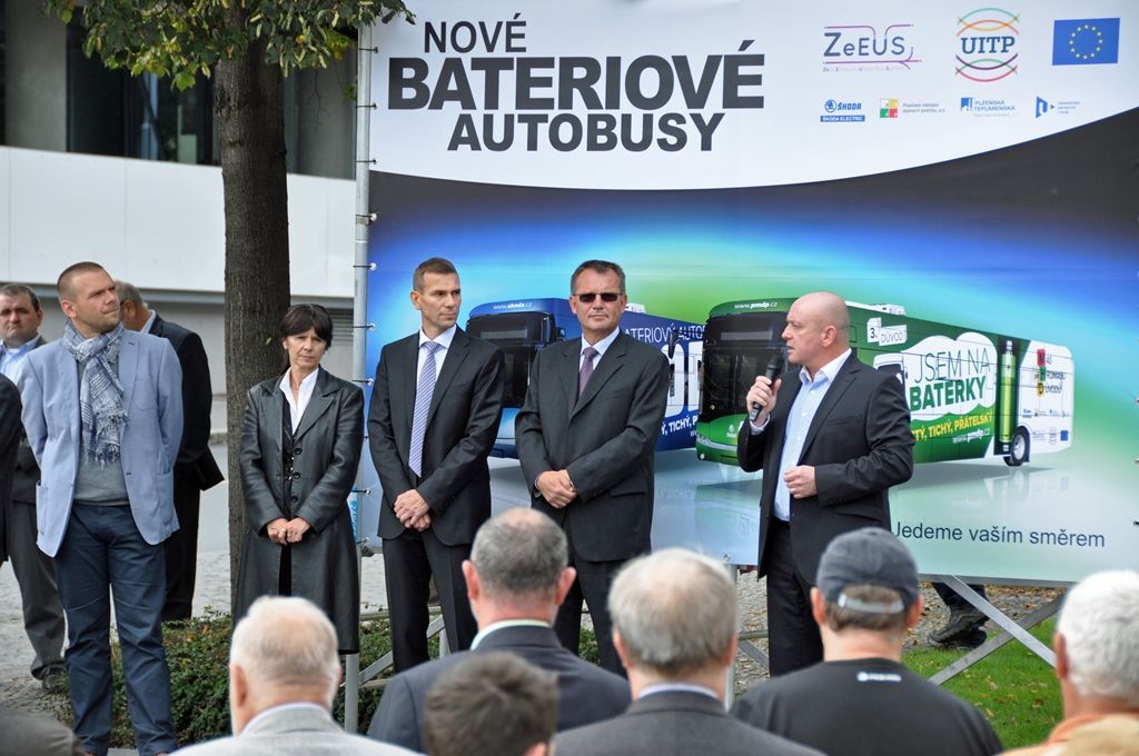 Dva plně elektrické, bezemisní a tiché autobusy začnou ve zkušebním provozu od jara příštího roku vozit cestující městskou veřejnou dopravou. Plzeň je tak jako jediné město střední a východní Evropy součástí projektu ZeEUS, který se věnuje řešení elektromobility v oblasti veřejné dopravy. Představení prvního z dvojice rychlonabíjecích elektrobusů se za město zúčastnili primátor Martin Baxa a jeho náměstkové Martin Zrzavecký, Miloslav Šimák a Pavel Šindelář.