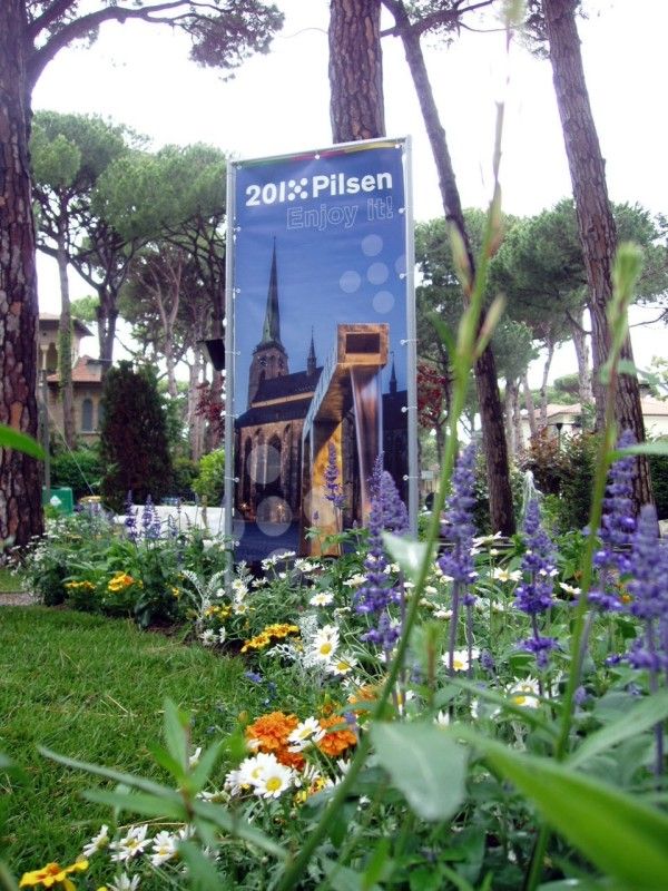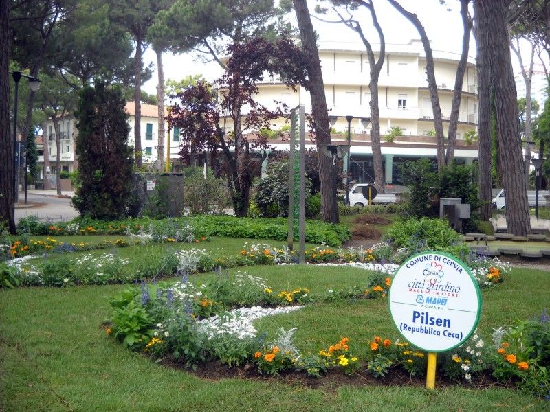 Příběhem města v zahradní úpravě se letos prezentuje město Plzeň v italské Cervii. Festival s názvem Cervia citta giardino (Cervia, město, zahrada), jehož vznik se datuje rokem 1972, je jednou z nejvýznamnějších akcí věnovaných architektuře zeleně. Každý rok se středoitalské městečko Cervia díky zahradníkům z mnoha italských a evropských měst promění v zajímavou zahradu. Plzeň, která jako jediná zastupuje Českou republiku, zvolila expozici s názvem Příběh města. „Příběhem města je myšlen vývoj Plzně od jeho založení na soutoku čtyř řek až po dnešní město plné života, barev a vůní. Proud času probíhající městem symbolizuje pestrý pás květin s šalvějí, pařížskými kopretinami, aksamitníky, starčeky, rudbekiemi, lobelkami a dalšími květinami a se zákruty v podobě říčních meandrů,“ popisuje Irena Tolarová, vedoucí oddělení koncepce zeleně Správy veřejné statku, a doplňuje, že například tradici vaření piva připomíná a jemným zvukem dotváří skleněný objekt z recyklovaných láhví Pilsner Urquell, jehož autorkou je výtvarnice Dagmar Štrosová, která tvoří pod značkou Luckywaste. Banner s velkoformátovou fotografií a texty připomíná bohatou kulturní nabídku města Plzně s upozorněním na získání titulu Evropské hlavní městku kultury 2015.