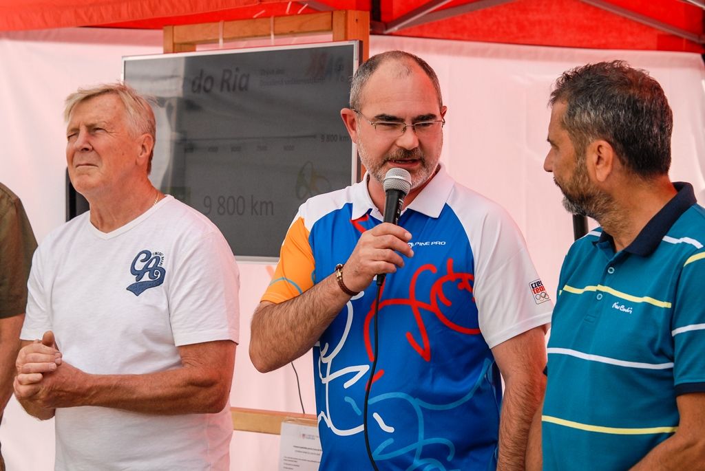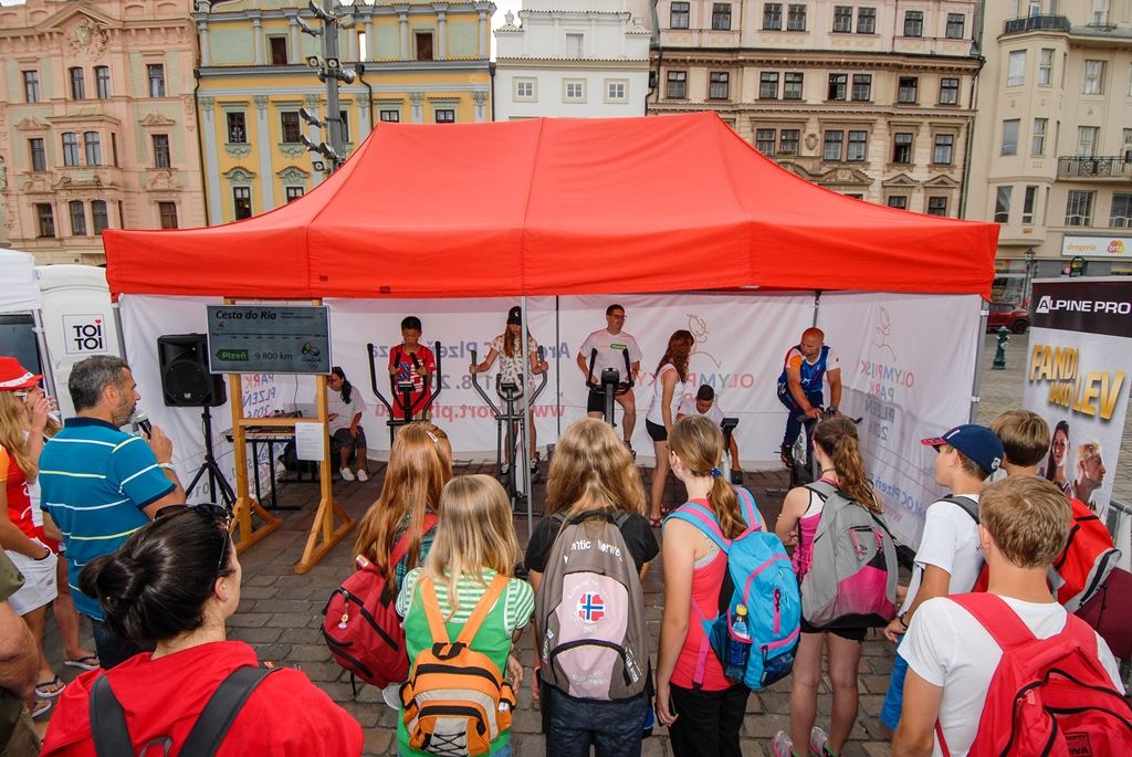 „Chceme tímto podpořit naše sportovce, kteří nás budou reprezentovat na olympiádě v Rio de Janeiru, a současně upozornit na připravovaný Olympijský park Plzeň. V něm se bude po dobu konání olympiády od 5. do 21. srpna přes den sportovat, večer fandit při sledování přenosů,“ řekl primátor, který si pro zahájení štafety vybral cyklistický trenažér. Na něj usedl také radní Michal Dvořák, na cestě do Ria ve stanu na náměstí ujel 42 kilometrů.
