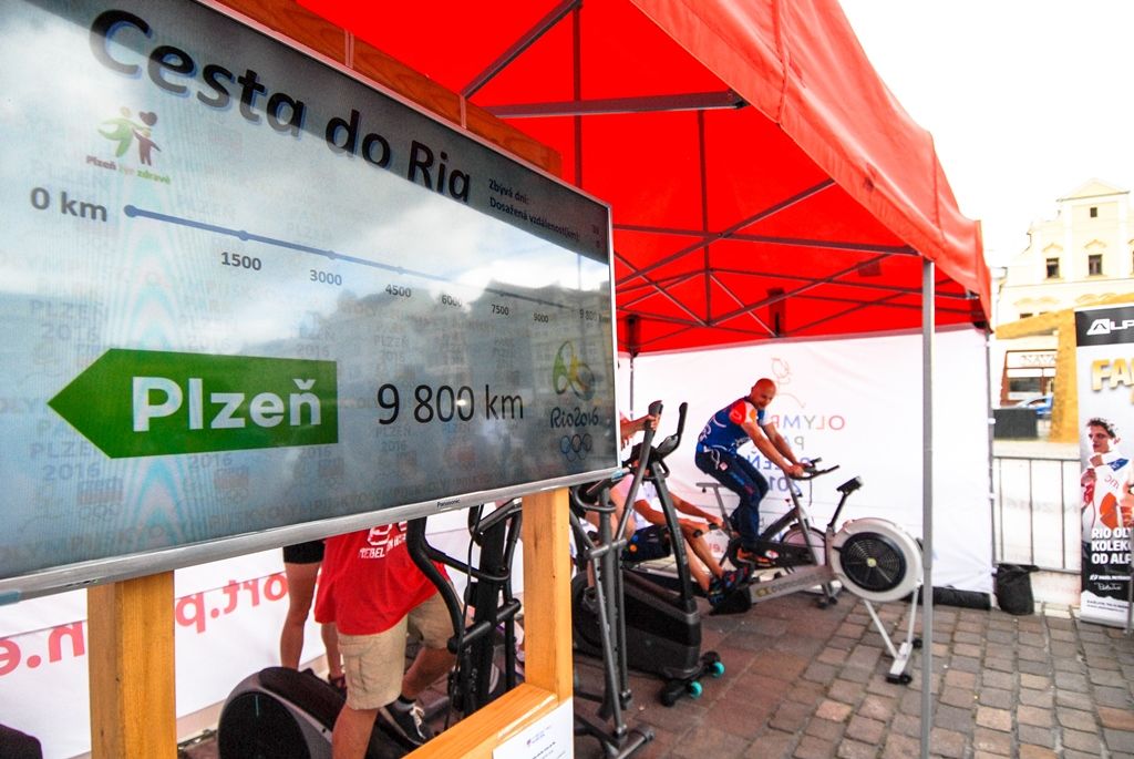 Plzeň odstartovala Cestu do Ria, projekt, do něhož se může zapojit každý její obyvatel i návštěvník. Do konce července mohou lidé ujít, uběhnout či na některém z pěti trenažérů ve stanu na náměstí Republiky zdolat libovolný počet metrů či kilometrů, a ukrojit tak z 9800 kilometrů, jež dělí Plzeň od brazilského Rio de Janeiro. Štafetu spustila skupina sportovců, mezi nimiž byli nadějní plavci Tereza Polcarová, Dominik Polcar a Nikol Žůrková, atletka Jana Reissová, triatlonista Přemysl Švarc i olympionici z roku 1972 házenkář Vladimír Jarý a hokejista Vladimír Bednář. Za město pomohli první metry z cesty do Ria ukrojit primátor Martin Zrzavecký, radní pro sport Michal Dvořák a ekonomický náměstek Pavel Kotas.