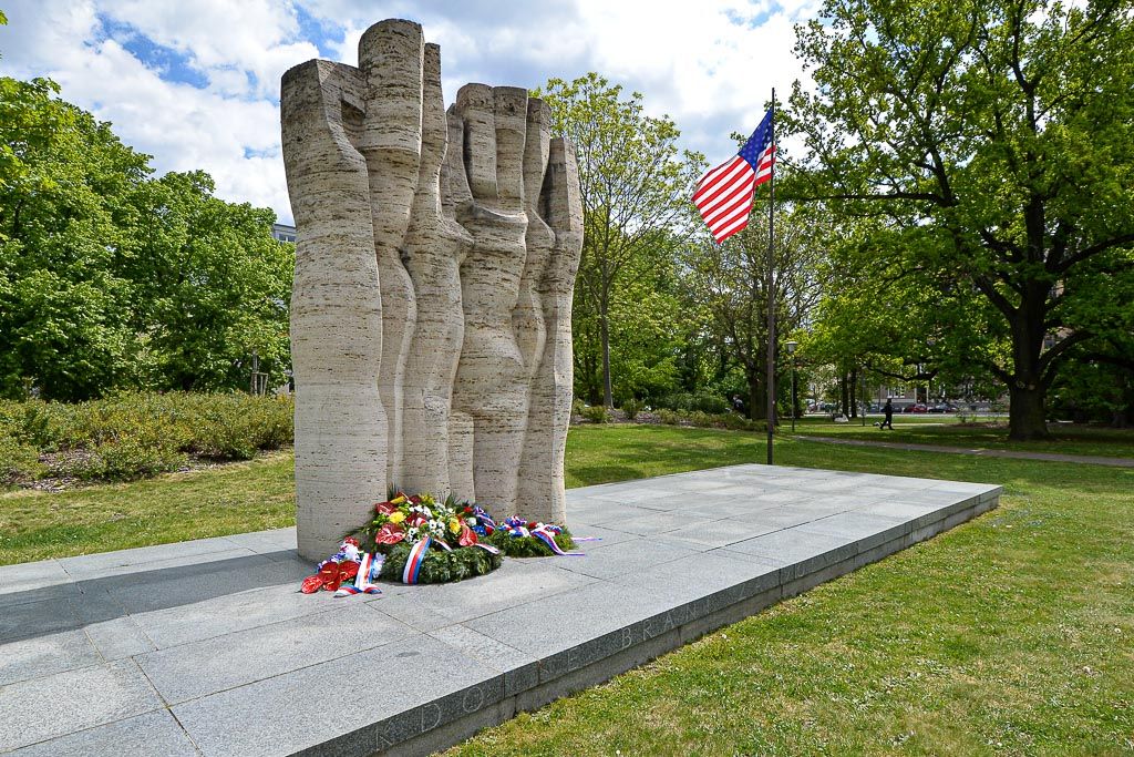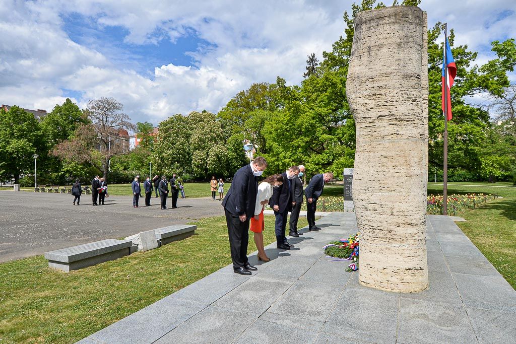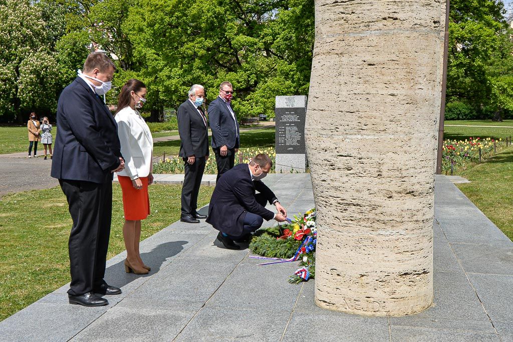 Květiny položili ke třem památníkům umístěným na náměstí Míru. Největší z nich, stojící uprostřed prostranství před Českým rozhlasem, je věnován obětem první a druhé světové války, další připomíná letce padlé ve druhé světové válce a třetí památku Plzeňanů padlých při květnovém povstání v roce 1945.