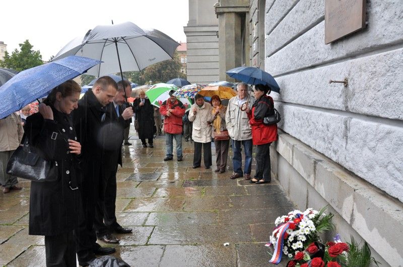 Před slavnostním setkáním v Měšťanské besedě se uskutečnil krátký vzpomínkový akt u pamětní desky na náměstí T. G. Masaryka.