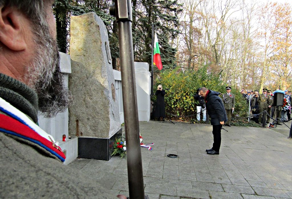 První náměstek Martin Baxa ve svém projevu především připomněl československé legionáře, bez nichž by samostatné Československo před sto lety nevzniklo. Poté na počest památce válečných veteránů zapálil svíčku a poklonil se jejich památce.