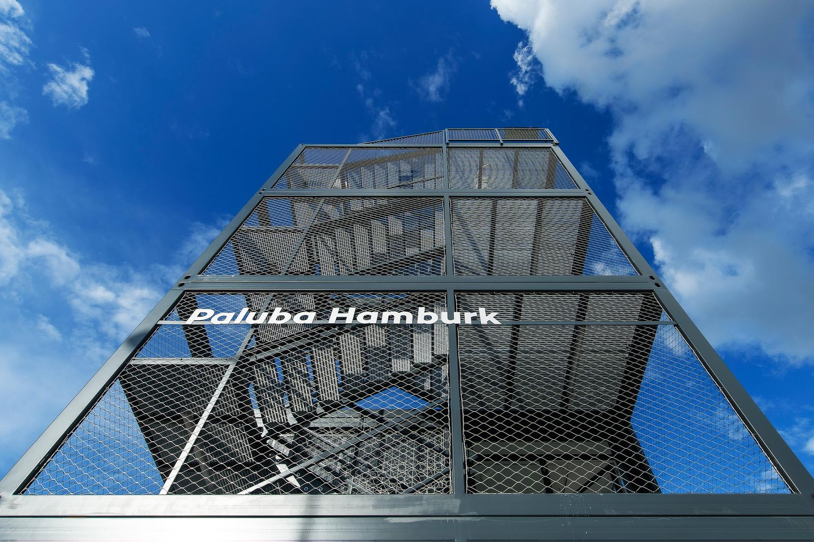 Autorem architektonického řešení je plzeňské architektonické studio projectstudio8. „Paluba Hamburk je navržená jako dočasná stavba a má za úkol v území nastartovat nové vztahy a poskytnout novou náplň. Od začátku jsme ji vyvíjeli ve spolupráci s firmou CUBESPACE, která se specializuje na modulární stavby a stojí i za úspěšným projektem Manifesto v Praze. Výsledkem je kultivovaný prostor s infocentrem, pro které jsme navrhovali i interiér. Celému konceptu dominuje vyhlídková věž, která bude tichým svědkem poměrně zásadních změn v průběhu dalších pěti let,“ uvedl Bohuslav Strejc z projectstudio8.