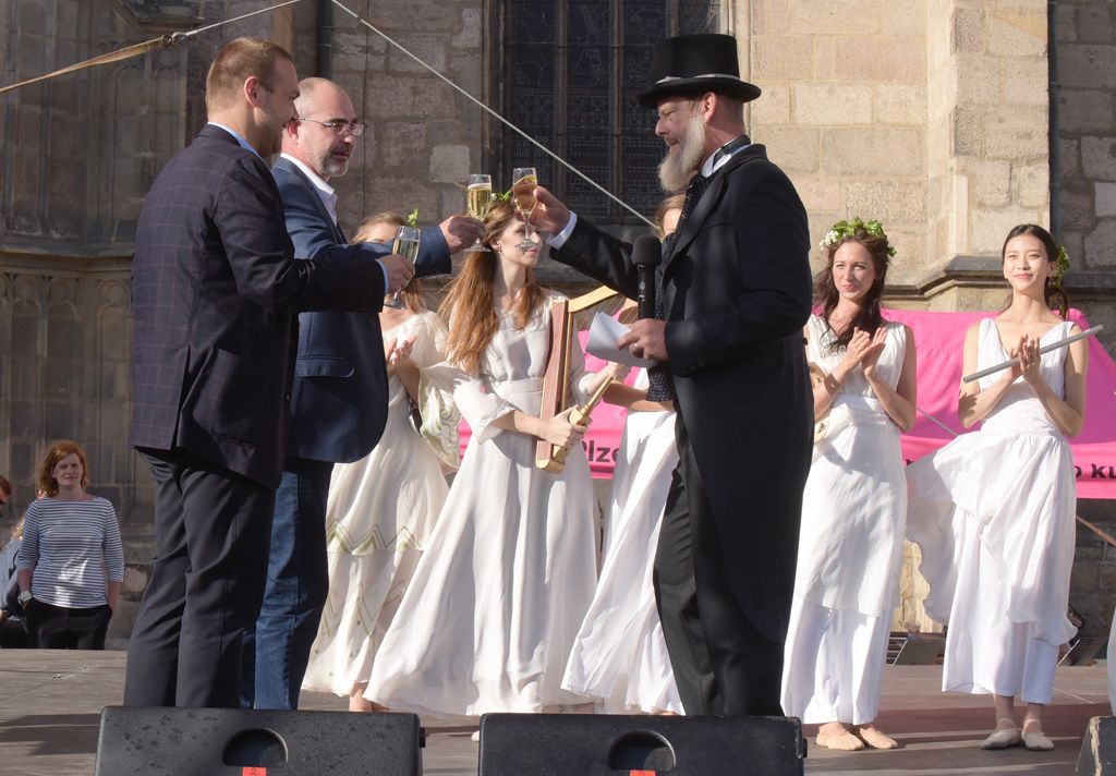 Profesionální herci, hudebníci, výtvarníci, ochotníci, akrobaté, ale i zástupci dalších kulturních a neziskových organizací zahájily v úterý spolu s veřejnosti novou kulturní sezonu v Plzni. Centrem města prošly stovky lidí v průvodu nazvaném Vendelín, který se poprvé uskutečnil před dvěma lety a je pojmenován po významném plzeňském herci a řediteli divadla Vendelínu Budilovi. Svůj program představili divadelníci na náměstí Republiky, kde si spolu s hercem Martinem Stránským převlečeným právě za Vendelína Budila na zdar nové sezony za město symbolicky připili primátor Plzně Martin Zrzavecký a jeho první náměstek Martin Baxa.