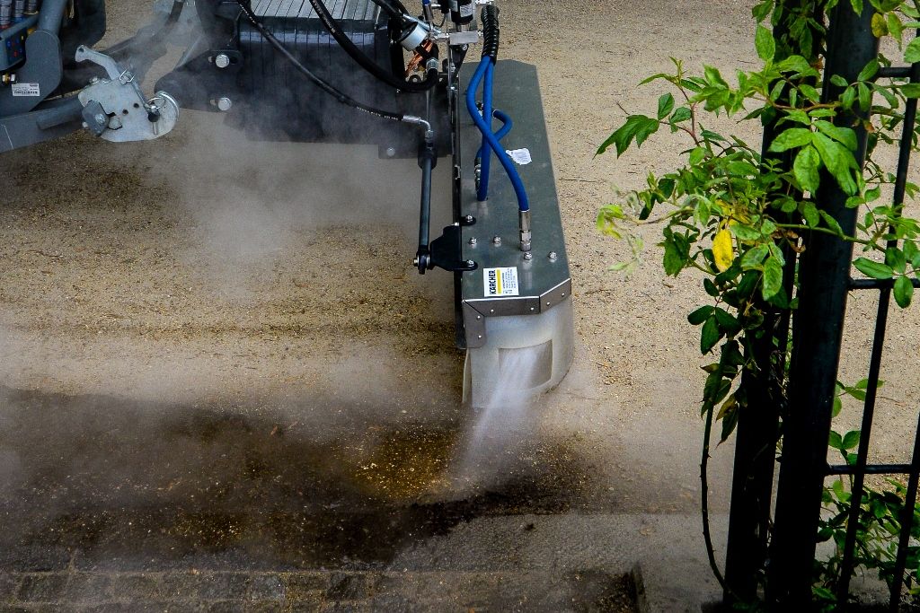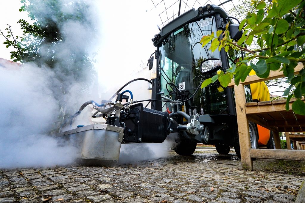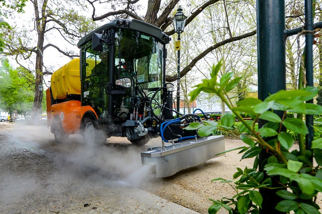 Stroj firmy Kärcher MC130, poháněný dieselovým motorem Kubota o výkonu 66 HP, ohřívá vodu, která je čerpána ze zásobníku o obsahu tisíc litrů vody. Vodu je nutno používat vodovodní z řadu, aby nedocházelo k ucpání trysek. Po takovém čištění trvá několik dnů, než rostlina uhyne. Nejdříve zhnědne, pak uschne a následně se rozdrolí. Dané hubení plevele je nutno opakovat přibližně třikrát za sezonu. Kabina řidiče tohoto stroje je klimatizovaná s perfektním výhledem.