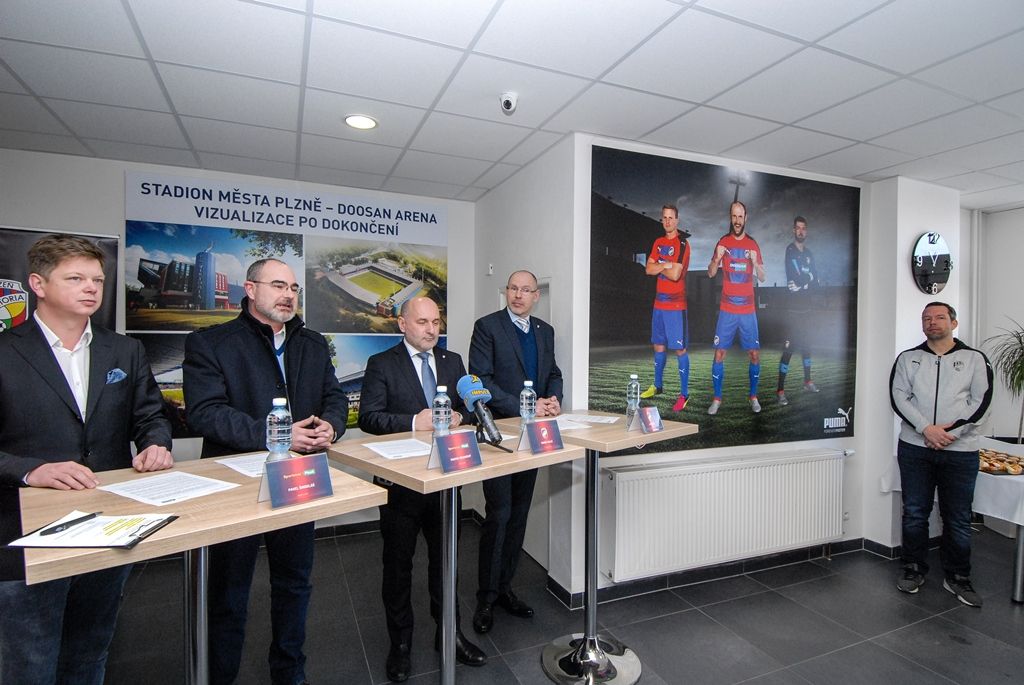 Plzeň dokončila rekonstrukci hlavní tribuny městského sportovního areálu ve Štruncových sadech, jehož fotbalovou část postupně přestavuje od jara 2011. Úpravy, díky nimž dostává jeden z nejmodernějších sportovních areálů v zemi svoji finální podobu, stály zhruba 52,1 milionu korun bez DPH. Kromě opravené tribuny získala Doosan Arena i dva nové objekty, rohové věže Sever a Jih. Věže, jejichž výstavba stála přibližně 90 milionů korun, poskytují zázemí, ubytování, prostory pro fyzioterapii, rehabilitaci i stravování mladých fotbalistů z klubové akademie. Upravenému stadionu dnes požehnal generální vikář Plzeňské diecéze Krzysztof Dędek.
