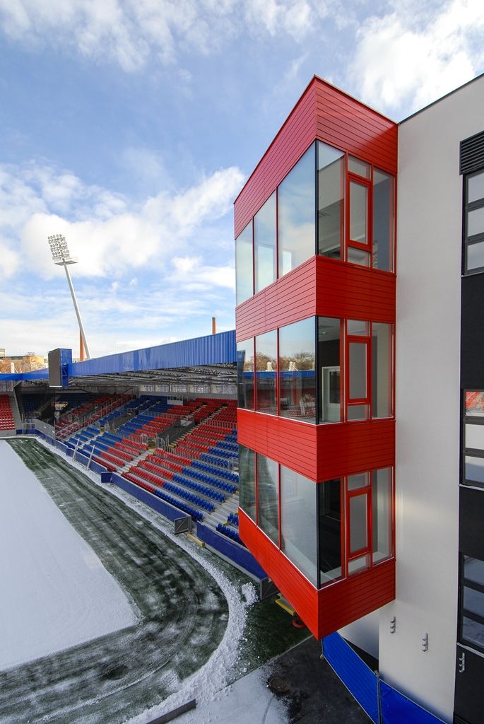 Součástí projektu bylo i zateplení fasády, rekonstrukce balkonu ve druhém nadzemním podlaží, úprava anglických dvorků hlavní tribuny. „Co se týká úpravy vnitřních prostor hlavní tribuny, tam se rekonstruovala rehabilitační část v prvním patře. Firma také pomocí lamel zakryla ochoz ve směru do parku, upraveny byly plochy mezi hlavní tribunou a fotbalovým hřištěm i ty okolo hlavní tribuny, dělala se také rekonstrukce inženýrských sítí uložených v této ploše,“ doplnil Pavel Šindelář. Zhotovitelem díla byla firma Metrostav, a. s.