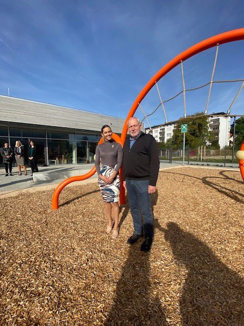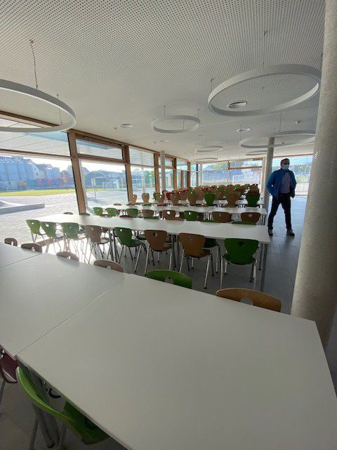 Kromě mateřinek si plzeňská delegace prohlédla také téměř novou základní školu (Kreuzschule im alten Stadium) postavenou na pozemku bývalého fotbalového hřiště. Školu tvoří třídy, dílny, knihovna, odpočinkové místnosti, tělocvična, venkovní prostory, ale také družina. Tématem hovoru byly organizace vyučování, covidová opatření, finanční náklady na stavbu, studijní programy a podobně.