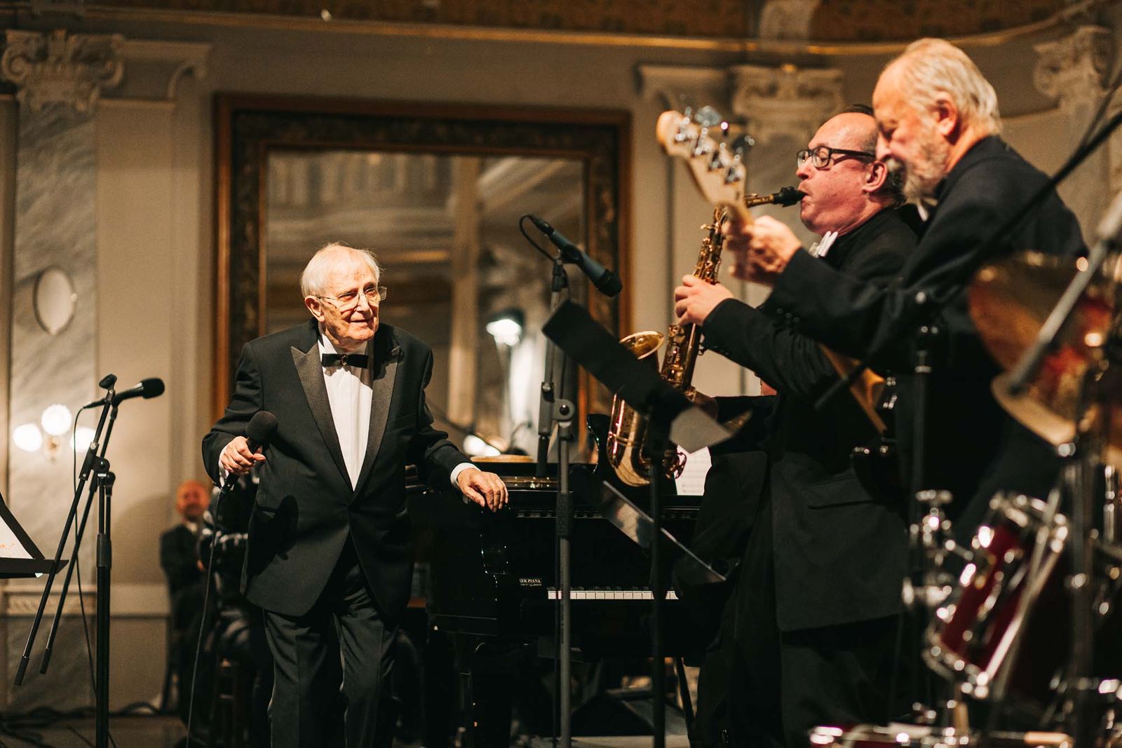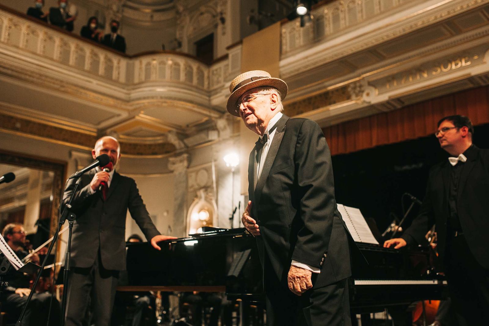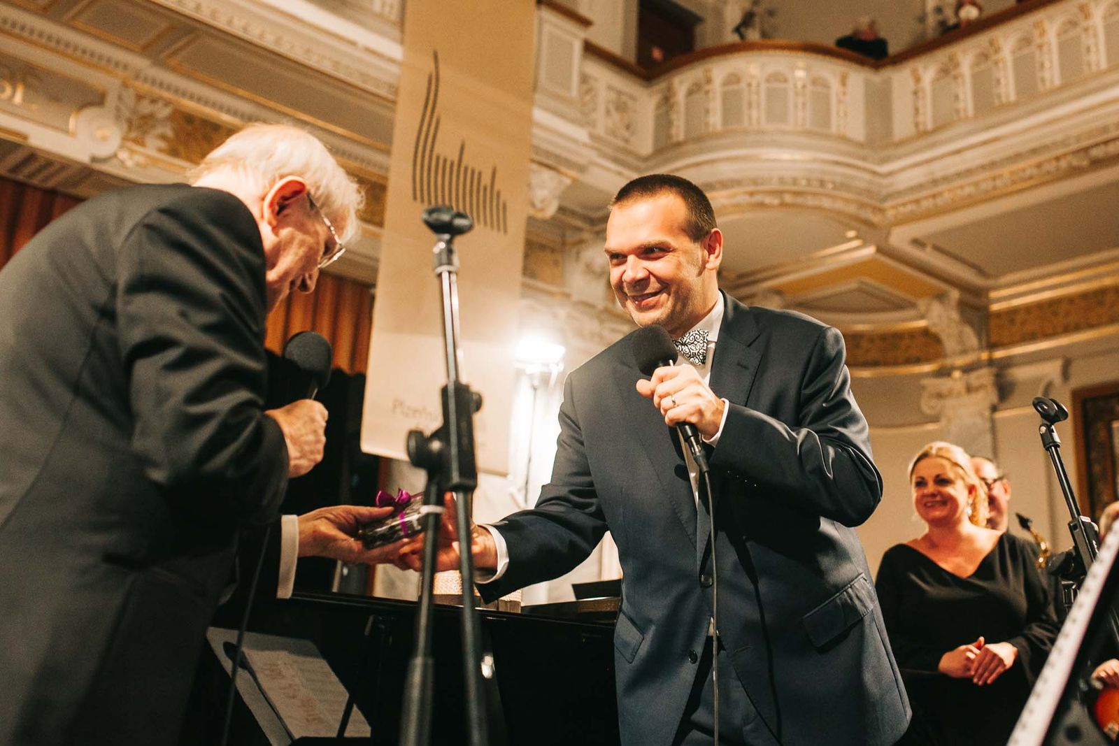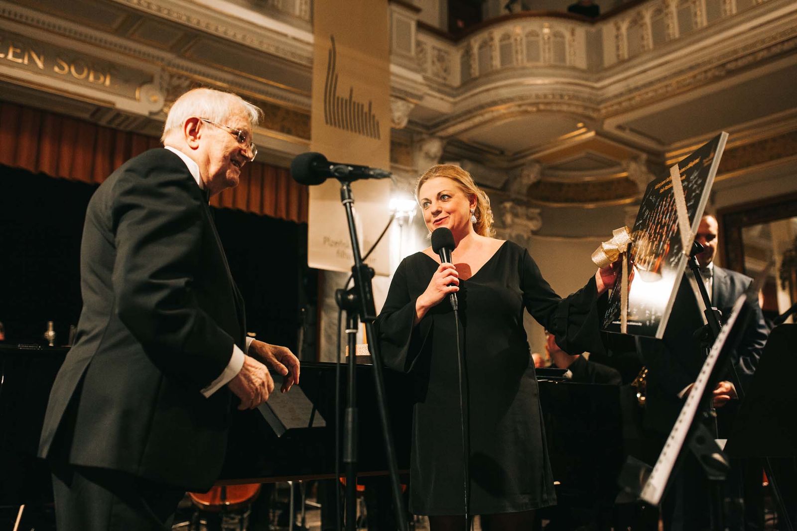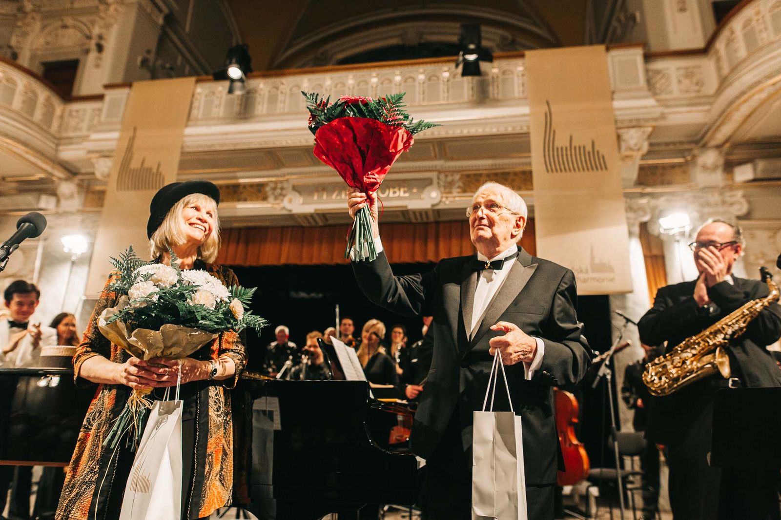 Plzeňská filharmonie pogratulovala Jiřímu Suchému, svými dary se připojilo i město Plzeň