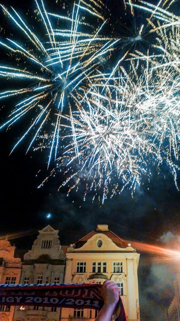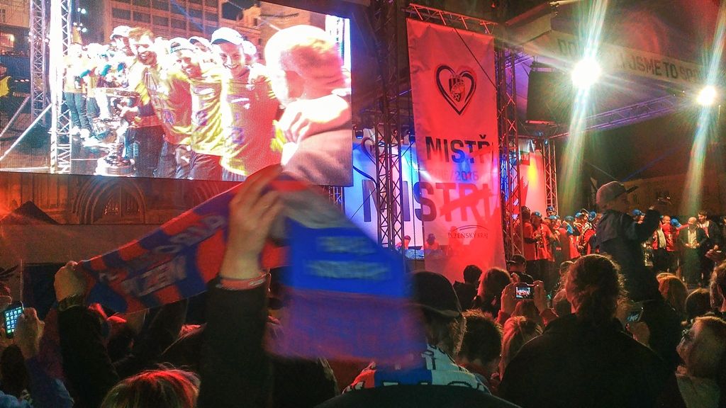 Další část oslav připravili Viktoriáni na náměstí Republiky, kam za svými fanoušky přijeli kolem deváté hodiny. Viktorka zde uspořádala hudební program a fanouškové od ní dostali čtyři tisíce piv. Po nekonečném nadšeném skandování a vyvolávání jednotlivých hráčů, trenérů a managementu Viktorky a společném zpívání s hudební hvězdou oslav Peterem Nagym vyvrcholily oslavy pestrým ohňostrojem. Poslední zápas sezony odehraje plzeňský tým v sobotu na hřišti SK Slavia Praha.