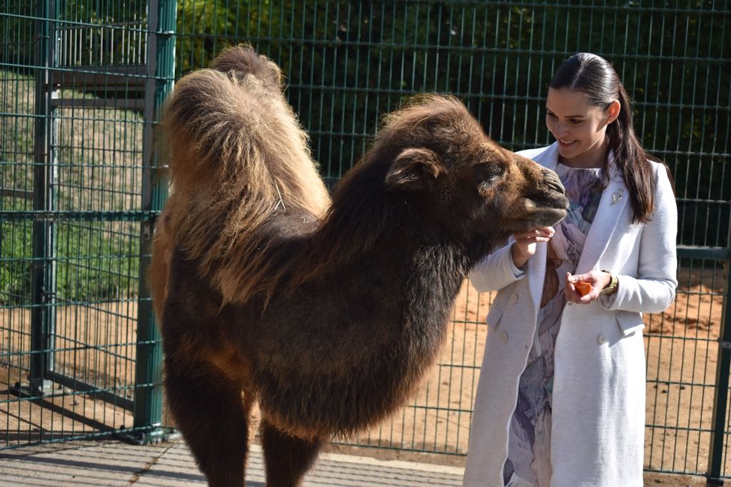 Po křtu velbloudice Aiko si radní Lucie Kantorová vyzkoušela také krmení žiraf či nosorožců.