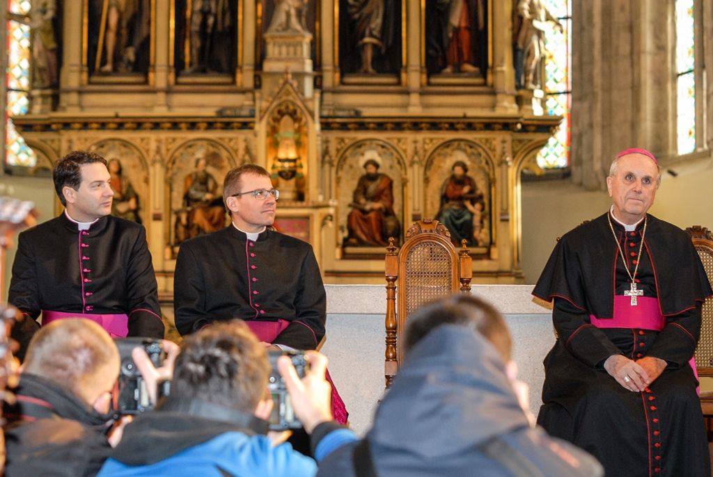 „Těžko se hledají slova v tento okamžik. Je mi velkou ctí Vás poznat, těšíme se na úzkou spolupráci, protože ta těsná spolupráce s otcem biskupem, naším Františkem, tady opravdu byla. Jsme připraveni Vás ve Vaší funkci plně podpořit,“ řekl primátor Tomáši Holubovi. Ten bude do funkce slavnostně uveden v sobotu 30. dubna v 10:30 hodin v katedrále sv. Bartoloměje, tedy na stejném místě, kde byl dnes představen.
