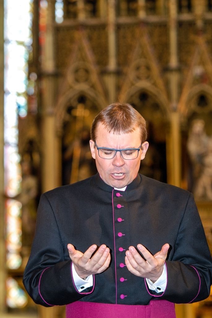 „Těším se na spolupráci se všemi, s těmi, kteří tvoří Plzeňskou diecézi, kněžími, s řeholními sestrami, muži a ženami, kteří společně vytvářejí Boží lid, a věřím, že budeme společně kráčet směrem k Božímu království,“ uvedl k přítomným Tomáš Holub. Zmínil také to, že ví, že František Radkovský měl skvělé vztahy se zástupci města, obou krajů, zastupiteli a starosty a podle svých slov se na tuto spolupráci těší taktéž. „Věřím, že to úplně nepokazím,“ dodal.