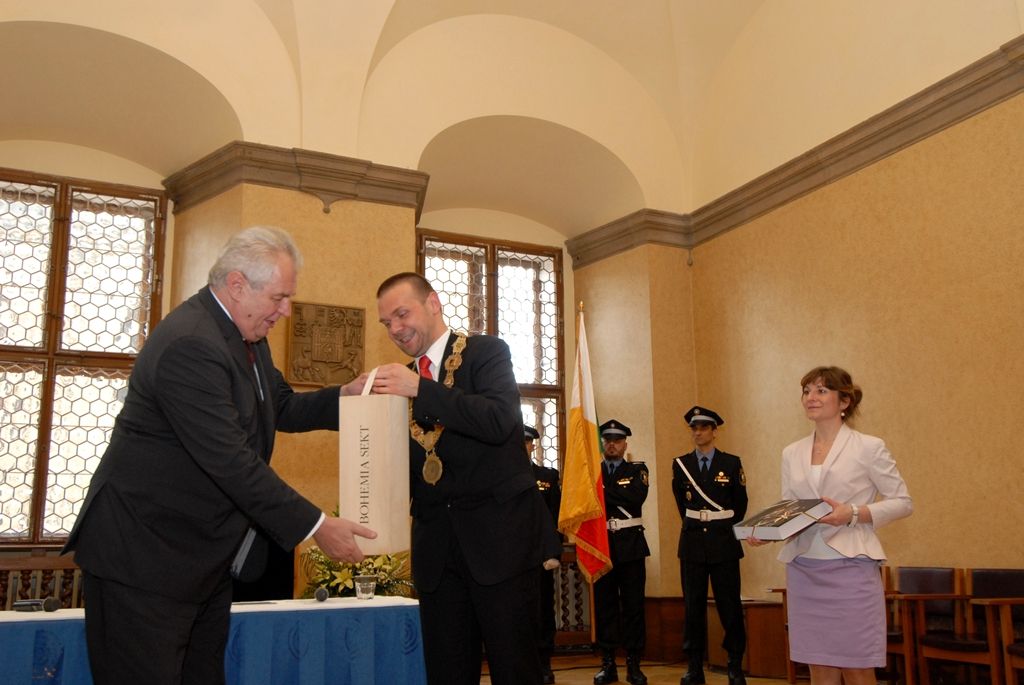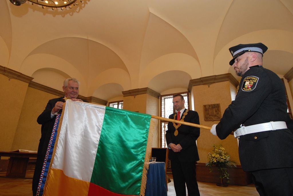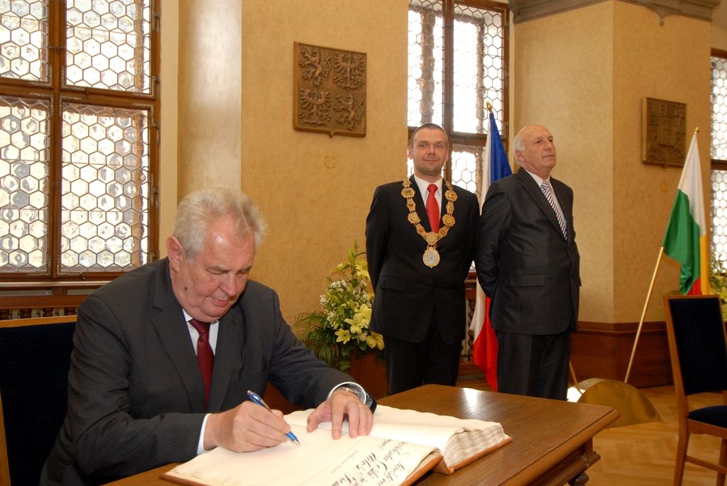 V závěru setkání se prezident podepsal do pamětní knihy, obdržel od primátora jako dárek speciální balení Bohemia sektu a první díl nově vydané knihy Dějiny města Plzně. Od dnešního dne zdobí plzeňský městský prapor prezidentská stuha, kterou osobně prezident na prapor připevnil.