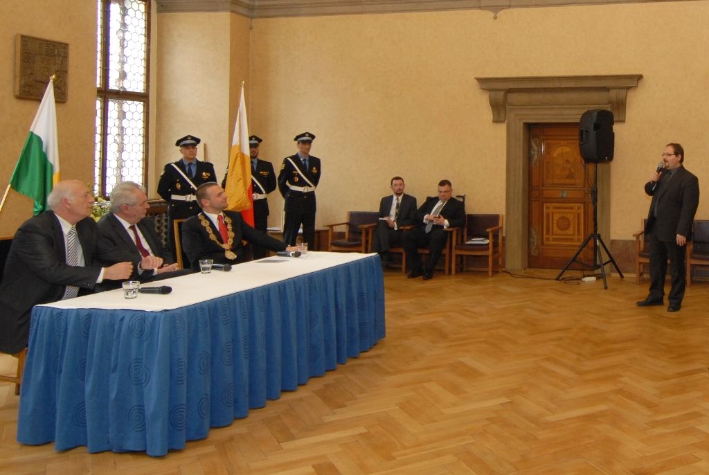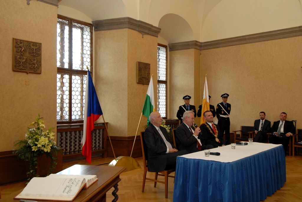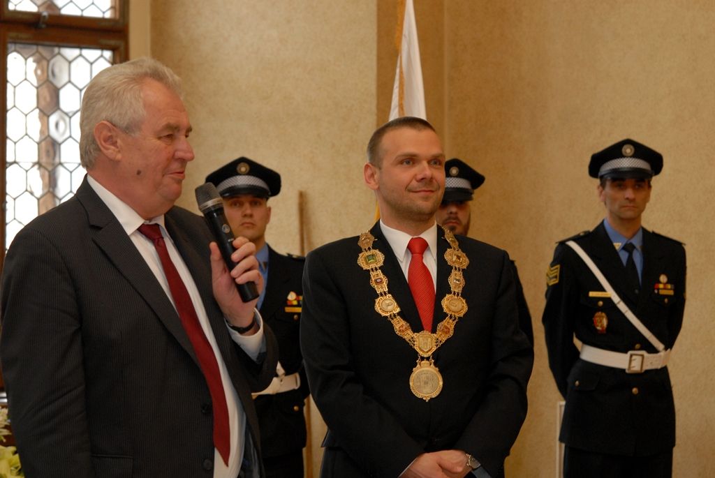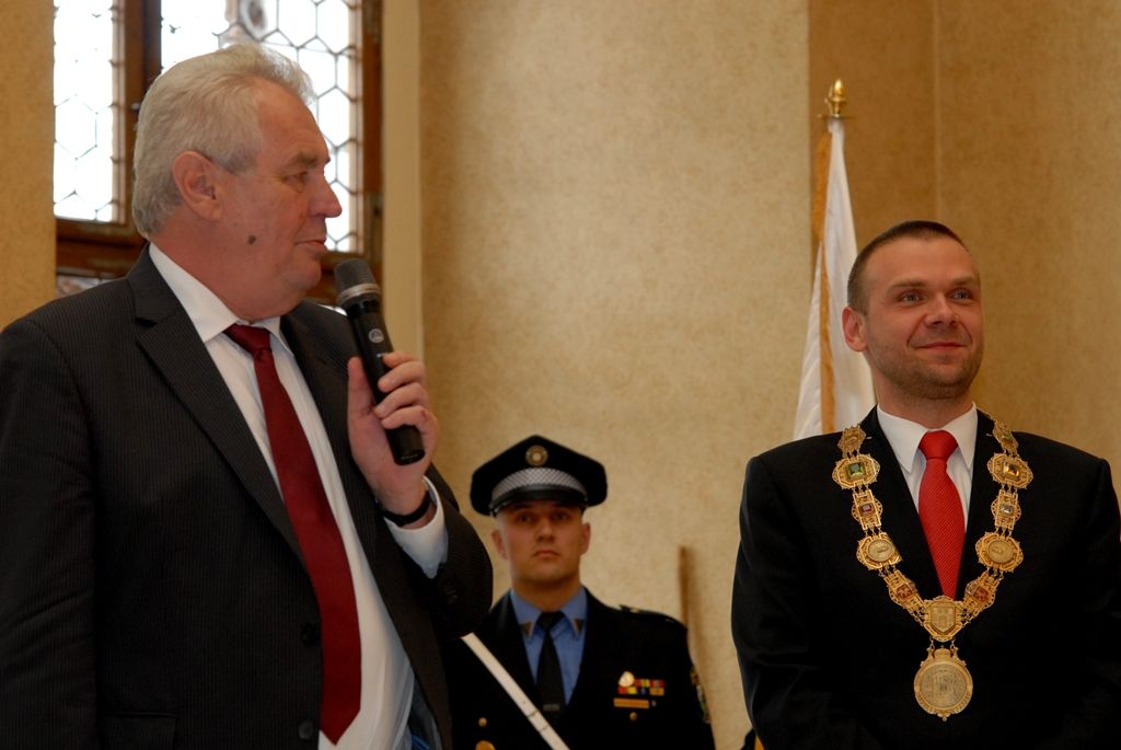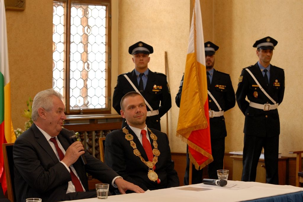 Na radnici zavítal prezident Miloš Zeman v odpoledních hodinách v doprovodu hejtmana Václava Šlajse a primátora Martina Baxy. „V Plzni jsem byl mnohokrát, ale zvláště vzpomínám na 6. květen 1990, kdy Plzeň oslavovala osvobození americkou armádou, ne sovětskou, jak se do té doby tvrdilo. Když vládla porevoluční atmosféra, věřili lidé v krásnou budoucnost, ale ta zešedla. A je to vina nás všech, mne nevyjímaje. Musíme udělat vše pro rozjasnění budoucnosti prostřednictvím, jak já říkám, ostrovů pozitivní deviace. Plzeňský kraj je jedním z nich. Rozvíjejme tyto ostrovy a snažme se kriticky upozorňovat na to, co se nám nelíbí,“ řekl mimo jiné ve svém úvodním slově prezident.