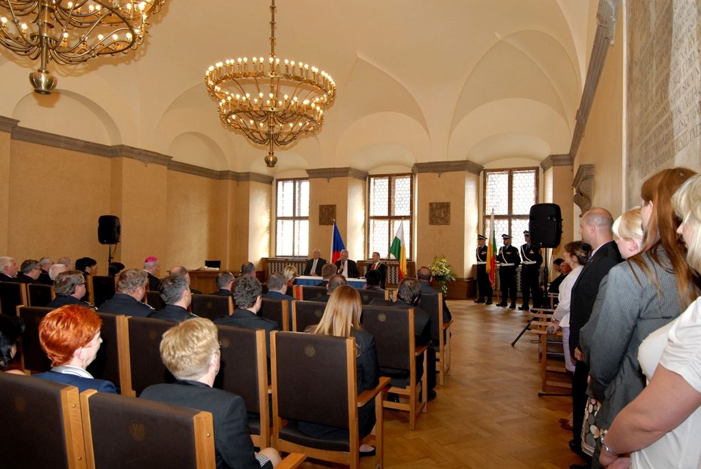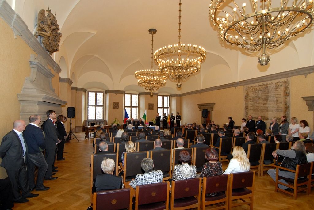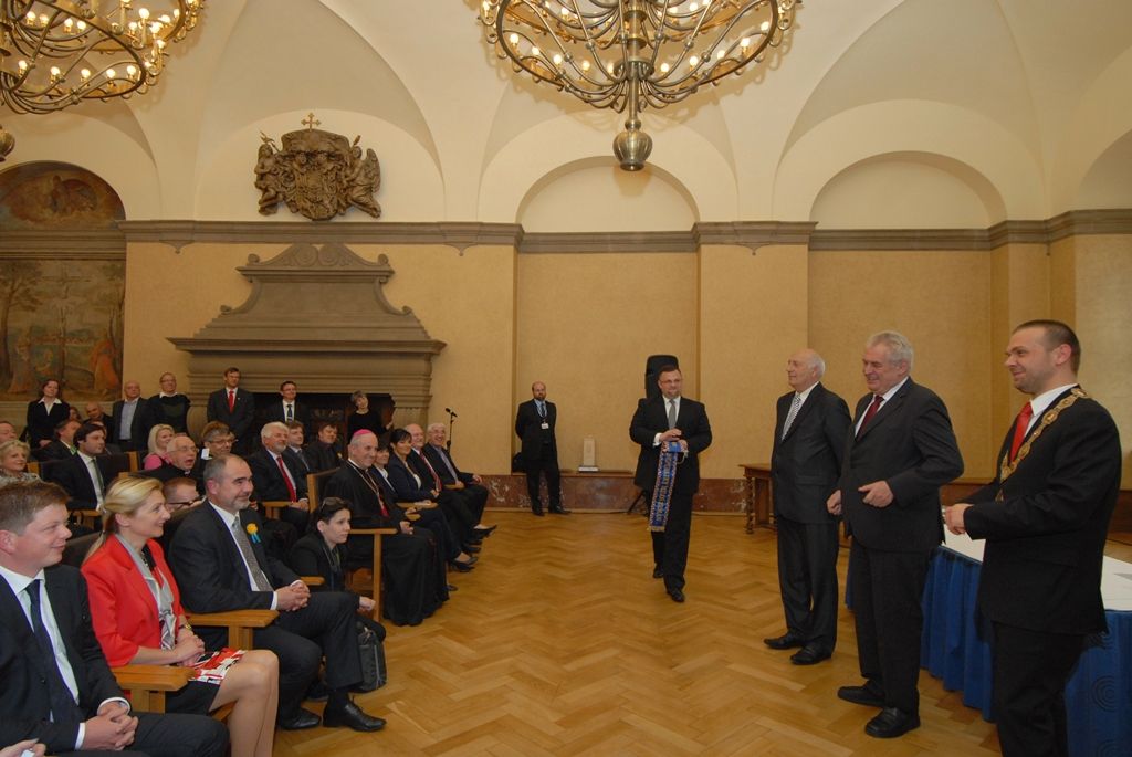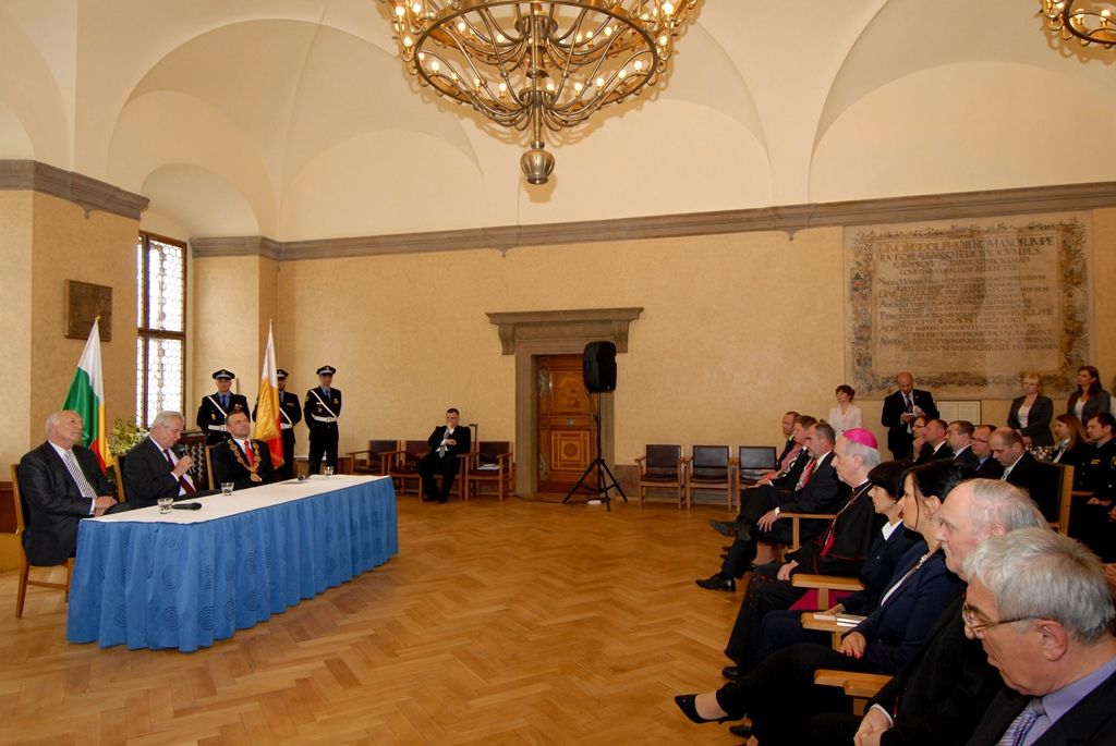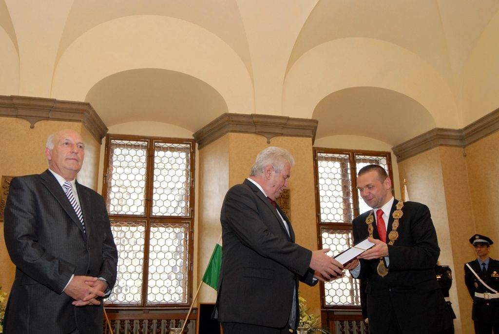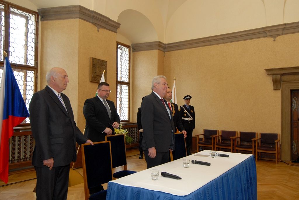 Na radnici zavítal prezident Miloš Zeman v odpoledních hodinách v doprovodu hejtmana Václava Šlajse a primátora Martina Baxy. „V Plzni jsem byl mnohokrát, ale zvláště vzpomínám na 6. květen 1990, kdy Plzeň oslavovala osvobození americkou armádou, ne sovětskou, jak se do té doby tvrdilo. Když vládla porevoluční atmosféra, věřili lidé v krásnou budoucnost, ale ta zešedla. A je to vina nás všech, mne nevyjímaje. Musíme udělat vše pro rozjasnění budoucnosti prostřednictvím, jak já říkám, ostrovů pozitivní deviace. Plzeňský kraj je jedním z nich. Rozvíjejme tyto ostrovy a snažme se kriticky upozorňovat na to, co se nám nelíbí,“ řekl mimo jiné ve svém úvodním slově prezident.