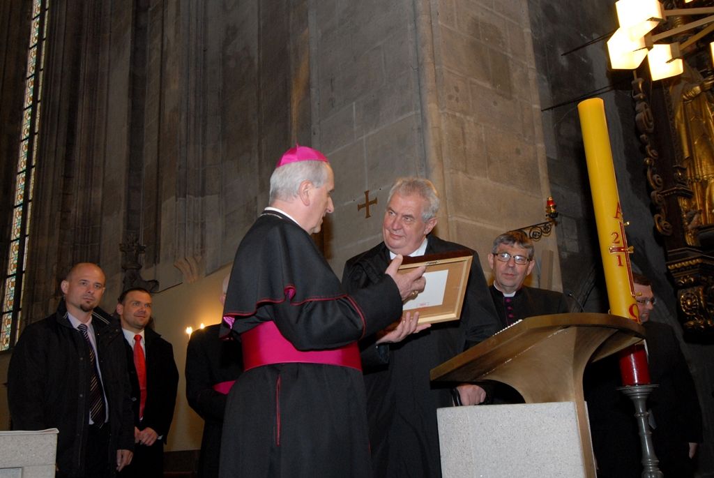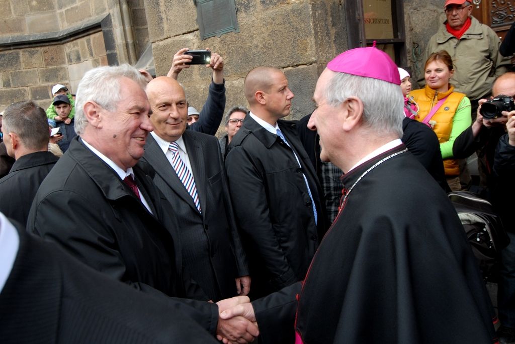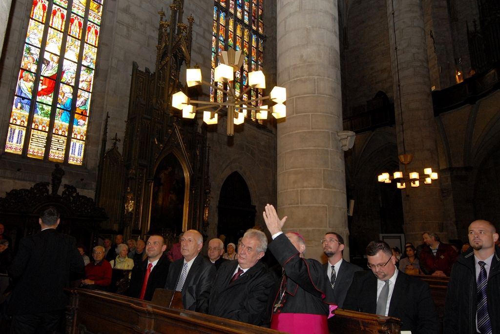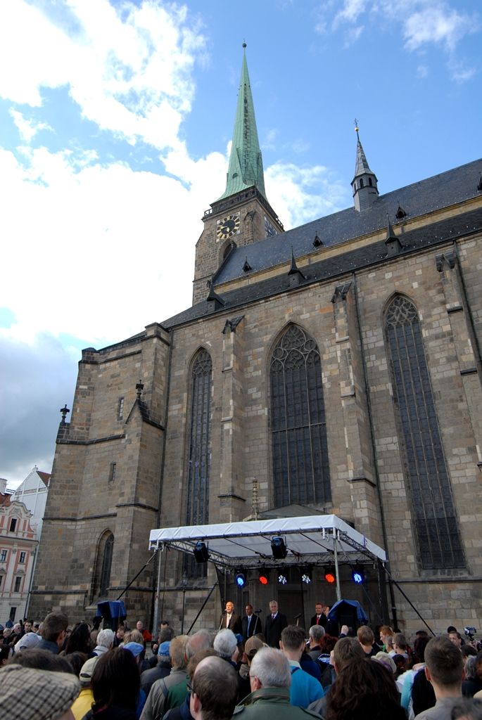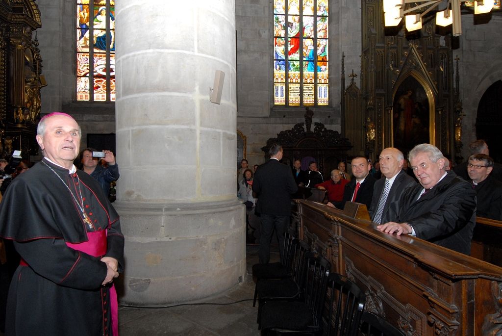 Z radnice vedly kroky prezidenta Miloše Zemana do katedrály sv. Bartoloměje, kde jej přivítal biskup František Radkovský. Před besedou s veřejností se krátce zastavil u andělíčka, který je pro Plzeňany symbolem splněných přání.