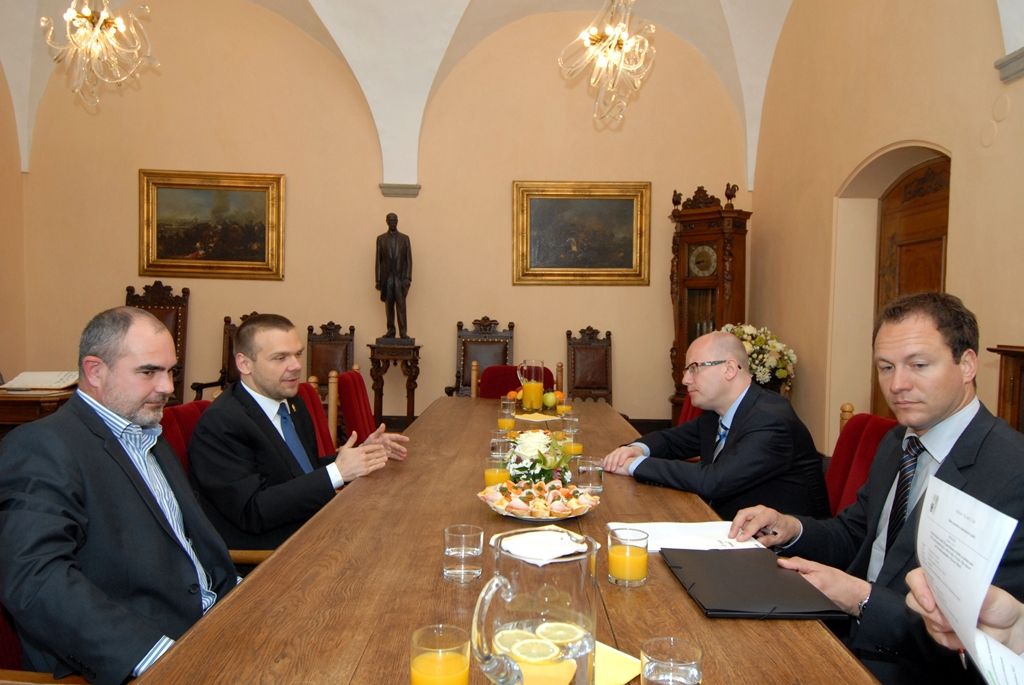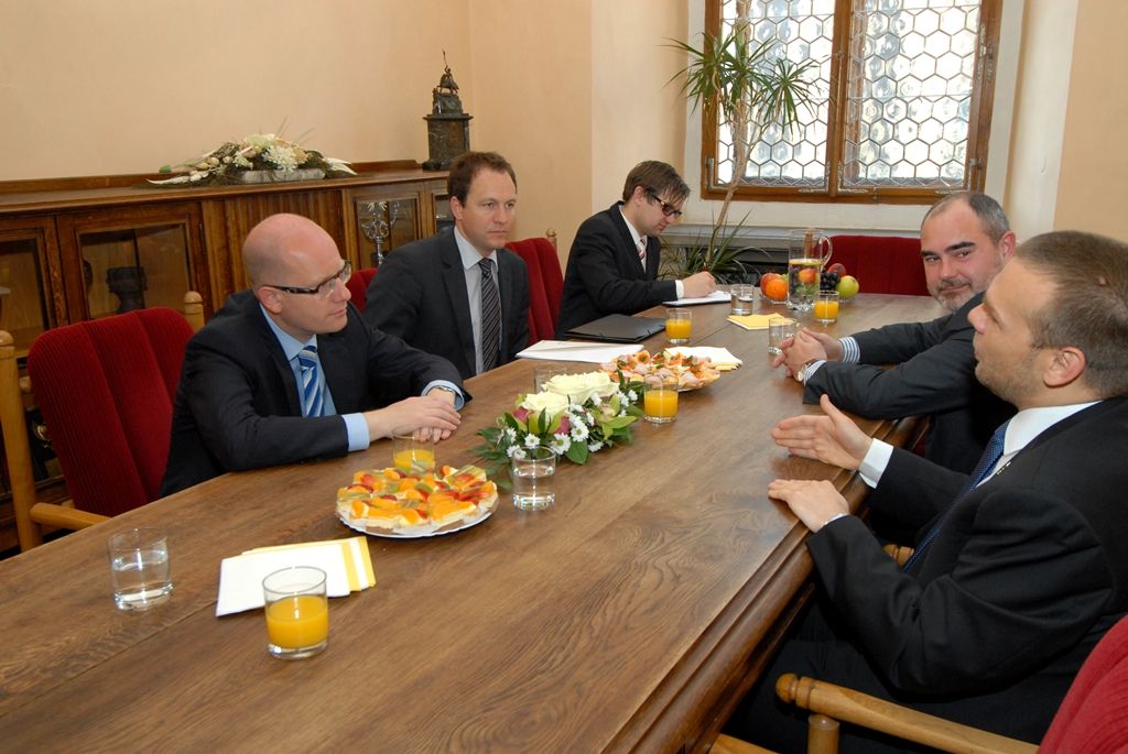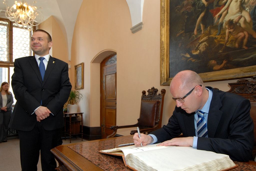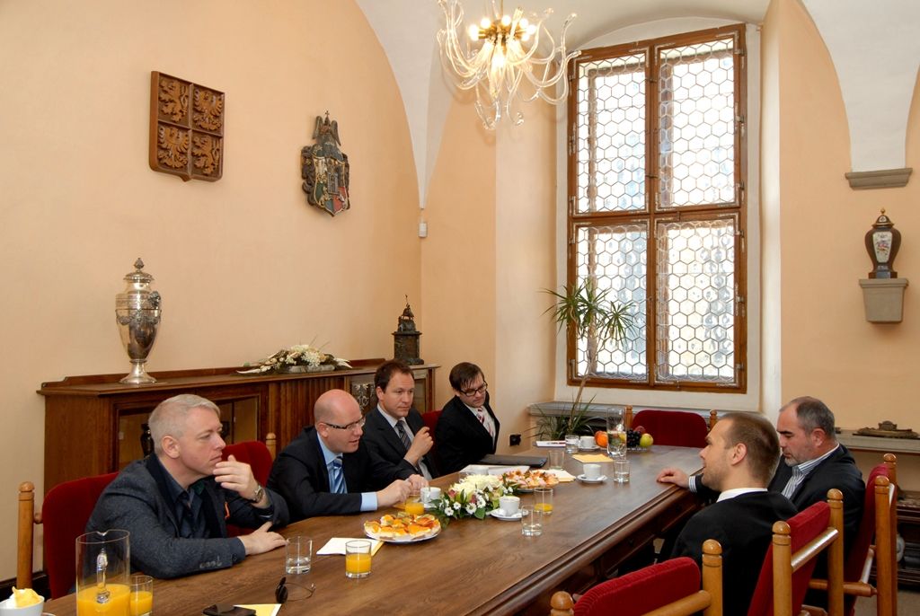 Premiéra při jeho návštěvě doprovázel ministr vnitra Milan Chovanec. Z radnice odjel Bohuslav Sobotka na zahájení sněmu Hospodářské komory České republiky, kterého se zúčastnili i primátor Martin Baxa a náměstek Martin Zrzavecký.