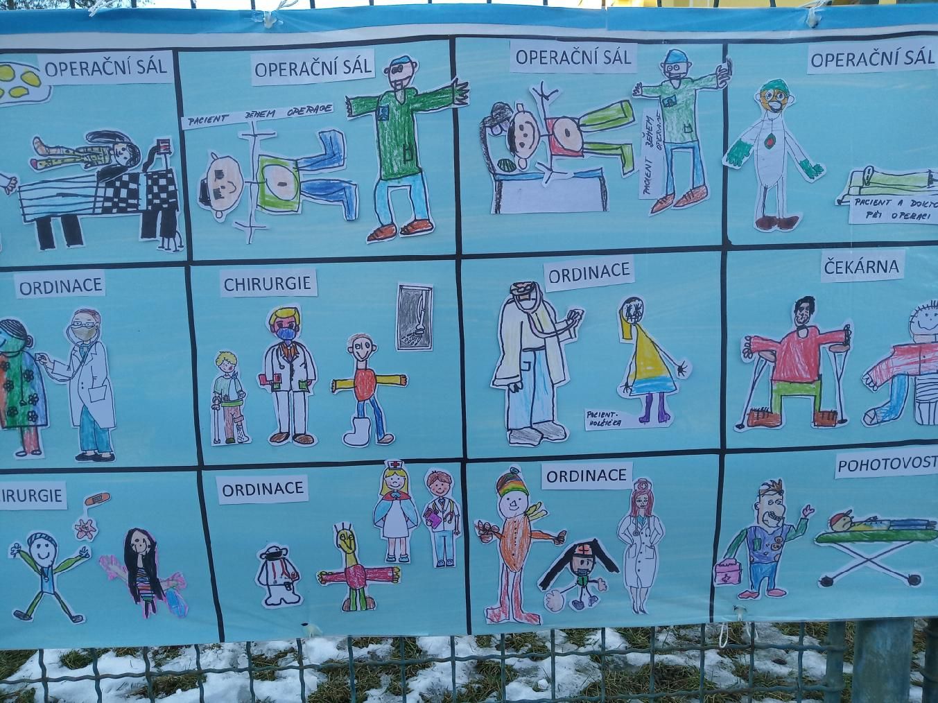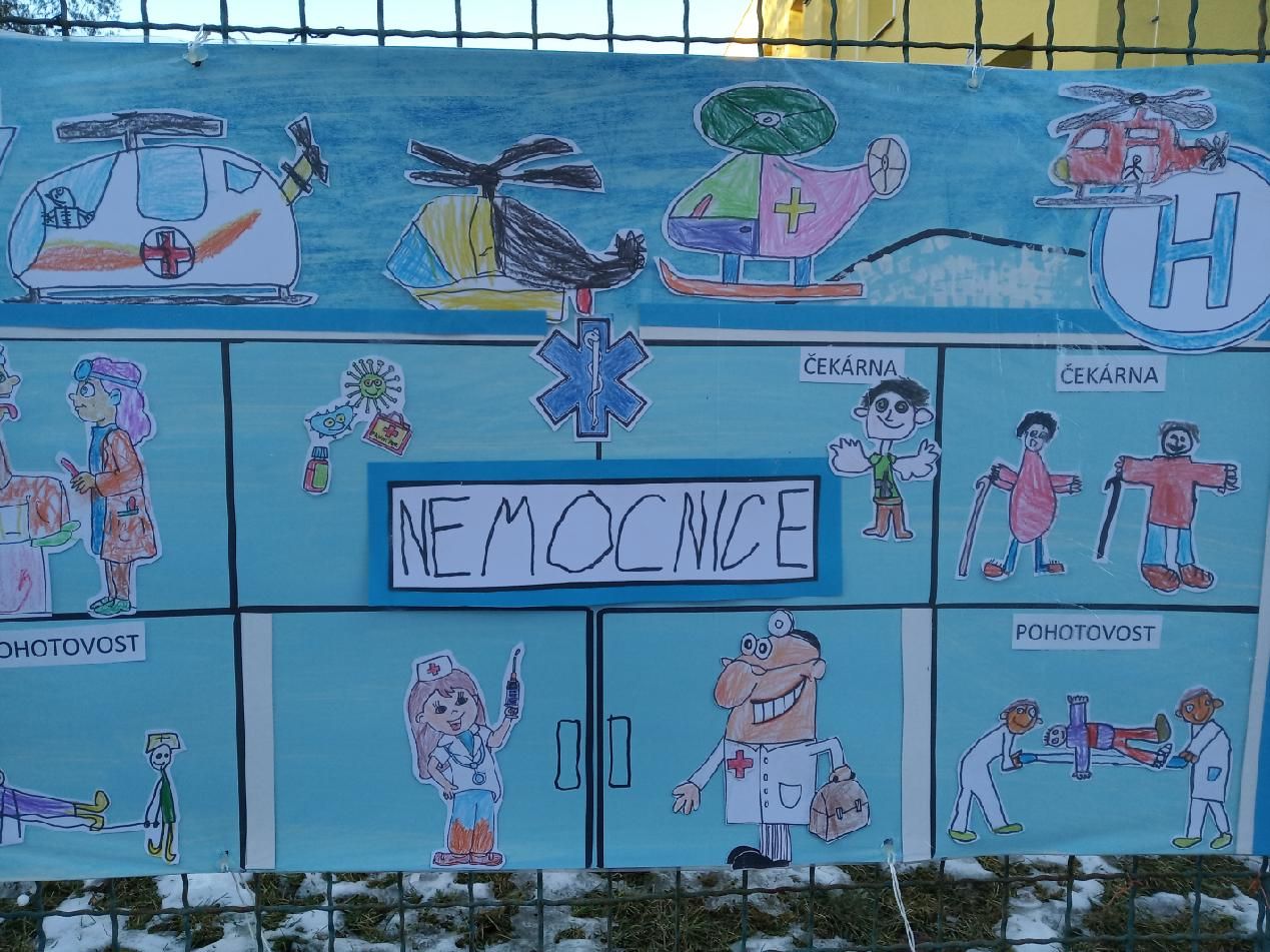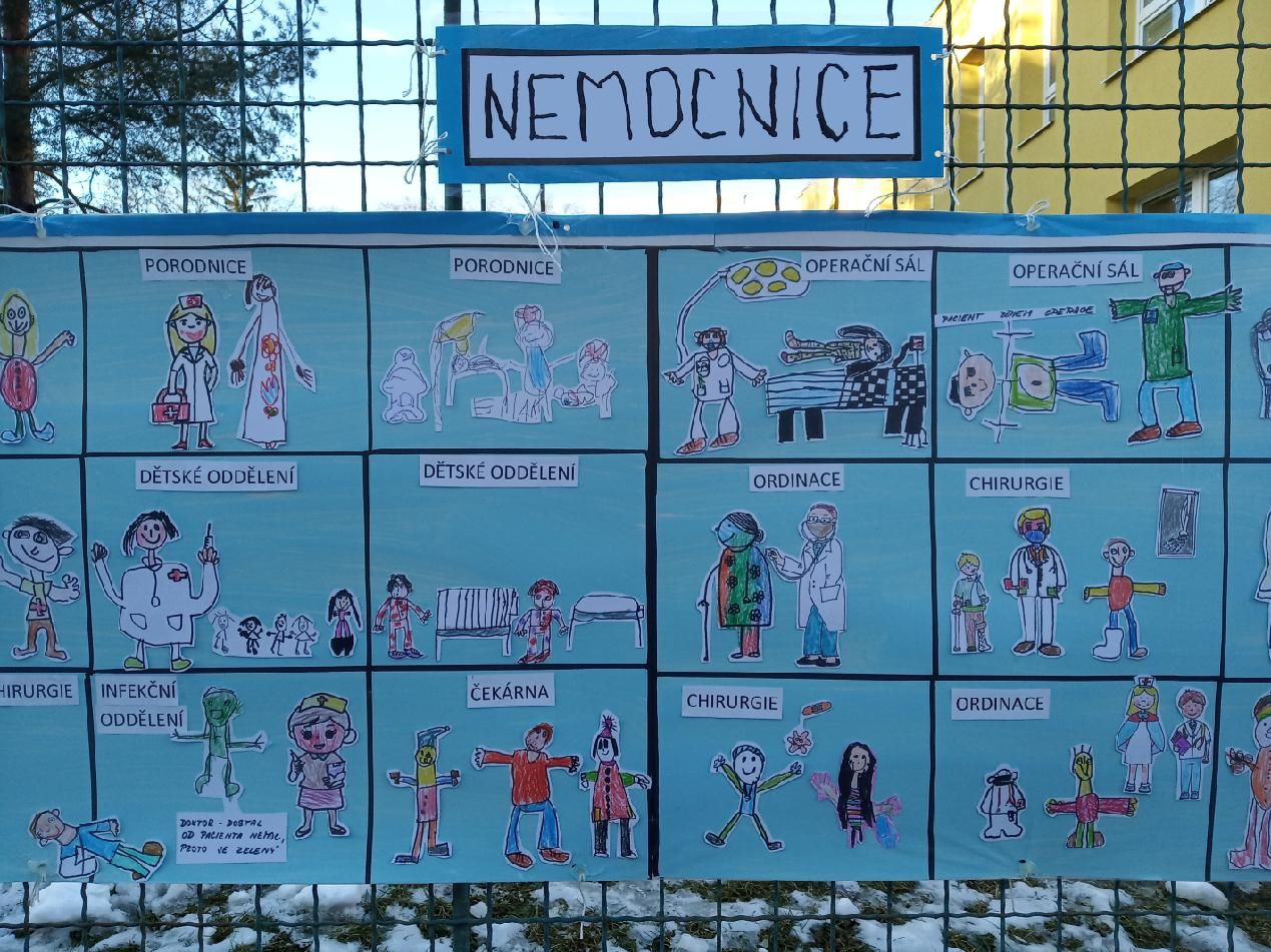 „Povídali jsme si s děvčaty a chlapci o zaměstnání jejich rodičů, prarodičů, tetiček či strýčků a dozvěděli jsme se spoustu zajímavých věcí. A při vyprávění zazněly i příběhy o maminkách, které pracují ve zdravotnictví. Děti vyprávěly také o tom, co v čekárnách a ordinacích zažily i ony samy. A tak vznikl nápad: Co kdybychom nakreslily velikou nemocnici a všechno, co do ní patří,“ uvedla učitelka Šárka Langa. Dodala, že nápad se líbil a zapojili se i rodiče, a tak díky společné práci vznikla koláž. Na pět a půl metru dlouhém výkresu začaly postavičky lékařů, sestřiček, záchranářů, pacientů, řidičů sanitek a pilotů helikoptér žít svůj vlastní příběh…