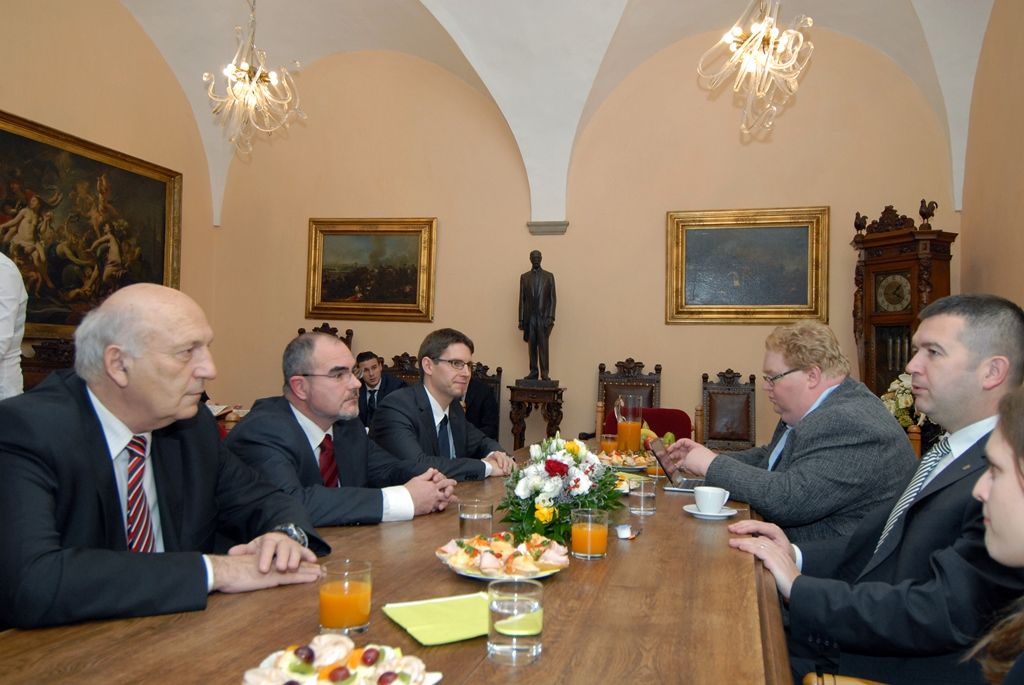 Na své jednodenní návštěvě Plzeňského kraje zavítal předseda Poslanecké sněmovny Parlamentu České republiky Jan Hamáček v doprovodu hejtmana Václava Šlajse i na radnici. Při setkání s primátorem Martinem Zrzaveckým a ekonomickým náměstkem Pavlem Kotasem debatovali nejen o blížícím se zahájení programu projektu Plzeň - Evropské hlavní město kultury 2015, ale také o rozpočtu města, možnostech dalšího rozvoje, podpoře podnikání prostřednictvím vědecko-technického parku nebo o spolupráci se Západočeskou univerzitou.