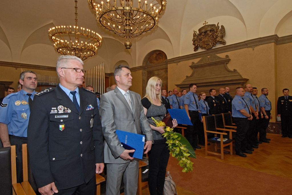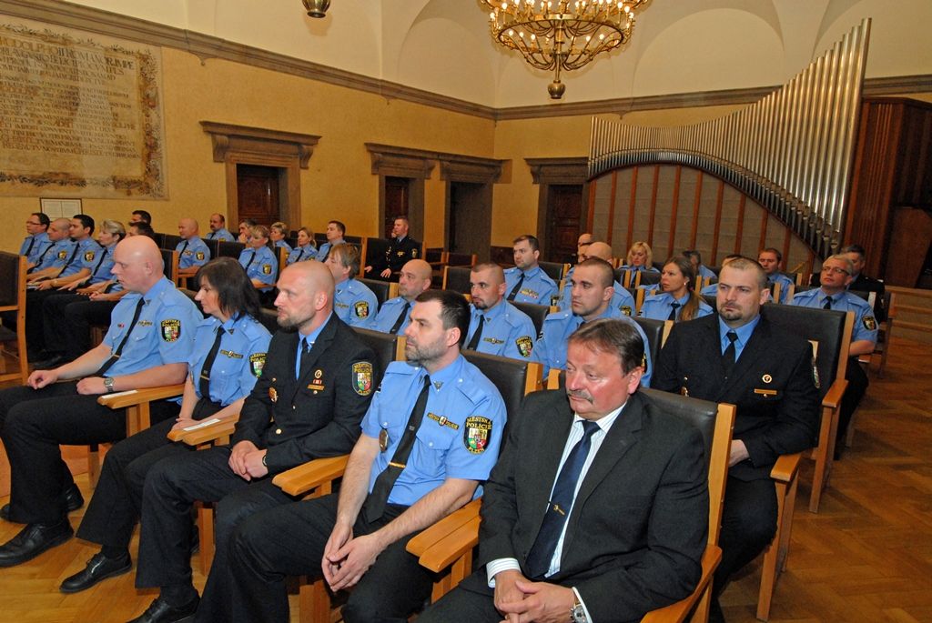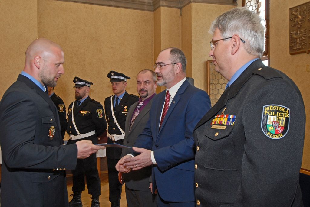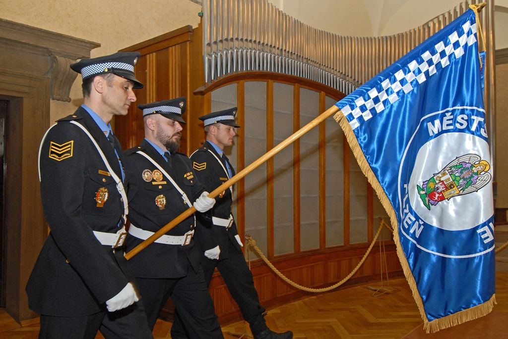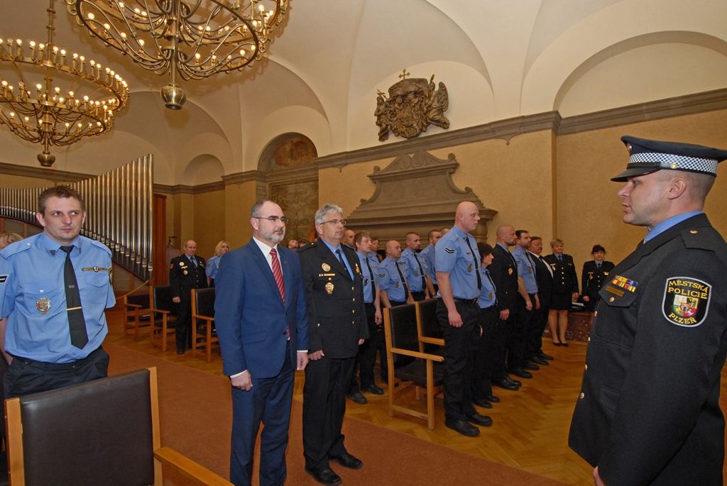 Ocenění za věrnost, dále také za statečnost, mimořádné činy a záchrany životů si dnes v obřadní síni plzeňské radnice převzalo přes 70 strážníků a zaměstnanců Městské policie Plzeň. Mezi těmi, kteří obdrželi čestné stužky a řády, jsou příslušníci vykonávající svoji práci 5, 10, 15 i 20 let, ale také ti, kteří pomohli zachránit život sebevrahům, poskytli první pomoc lidem v bezvědomí, zakročili proti pachatelům vloupání, a to ať již ve službě nebo v době osobního volna, zasáhli proti skupině agresivních osob a podobně.