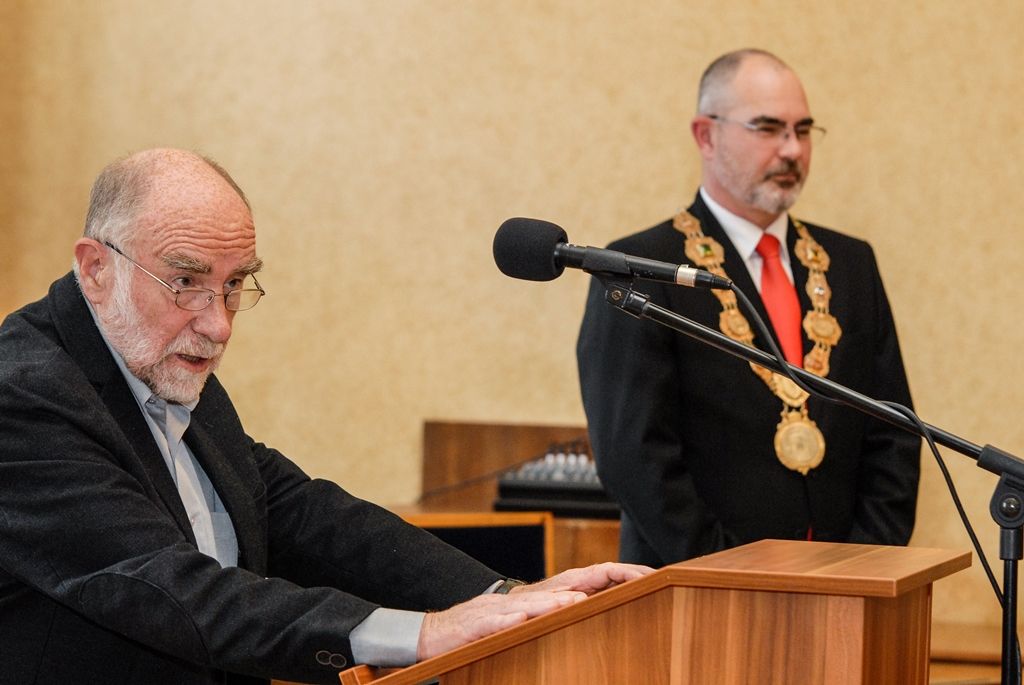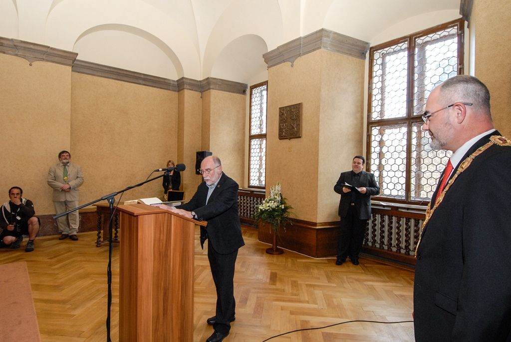 „Ivan Binar byl odsouzen do vězení, když se v roce 1970 hraním a zpěvem písní z muzikálu ‚Syn pluku‘ dopustil takzvaného pobuřování. Ve svobodných poměrech by to byl nevinný a přirozený projev, v počínajících letech normalizace to bylo absurdně posouzeno jako trestný čin. A právě odpor proti takovým absurdnostem přivedl pana Binara k podpisu Charty ´77 a nakonec i k místu redaktora Svobodné Evropy. Z ní nám pak roky pomáhal svými informacemi a pořady pochopit podstatu tehdejšího režimu, pochopit, co znamená svoboda. Pomáhal připravit půdu k pádu režimu v listopadu 1989,“ uvedl dnes ve svém projevu primátor Martin Zrzavecký.