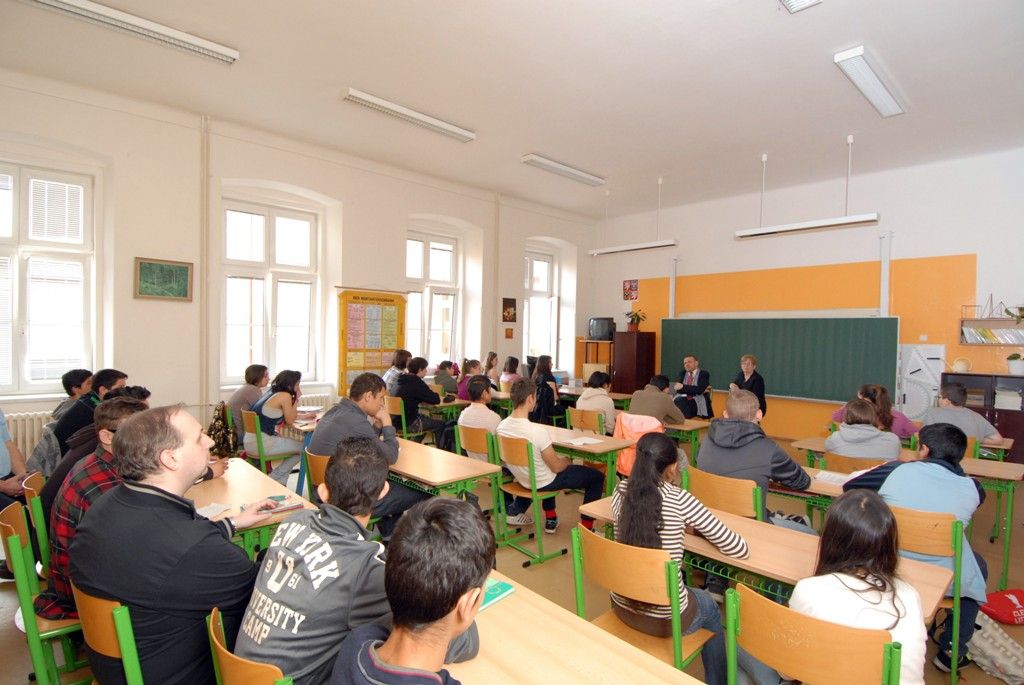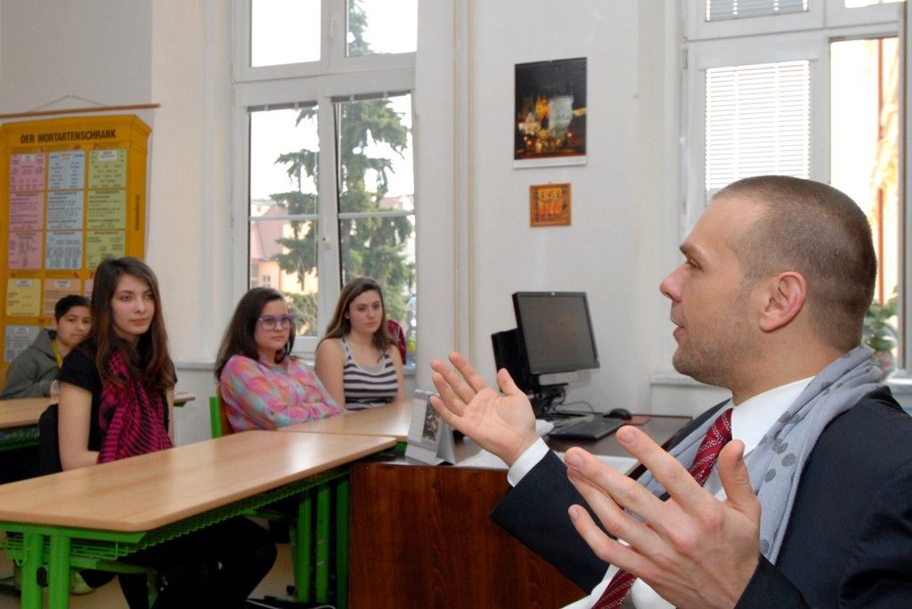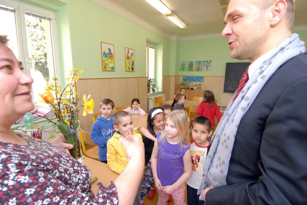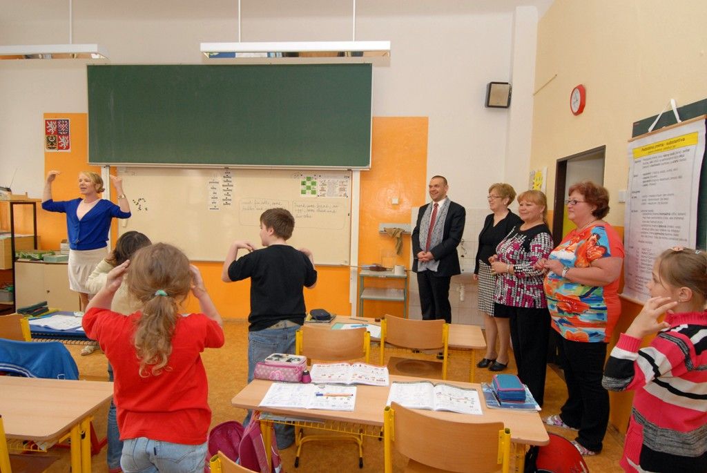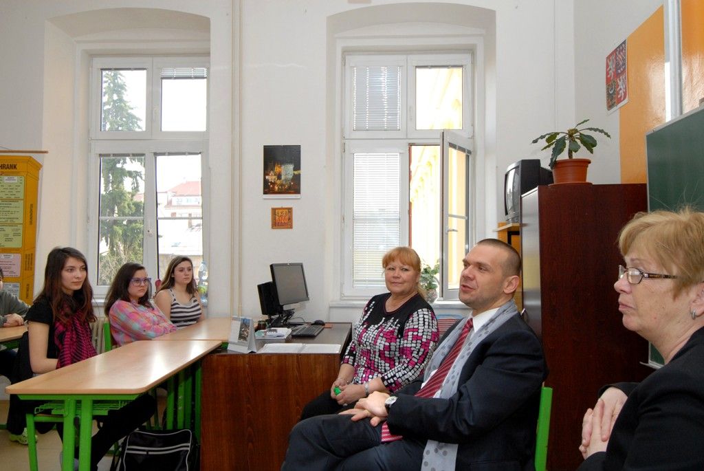 Školní areál ukrytý ve vnitrobloku si primátor prohlédl s ředitelkou školy Evou Peisarovou a její zástupkyní Ivetou Žižkovou. Při besedě se žáky 2. stupně odpovídal na dotazy nejen ke stavbě Nového divadla, omezení hazardu, ale také k jeho zálibám.