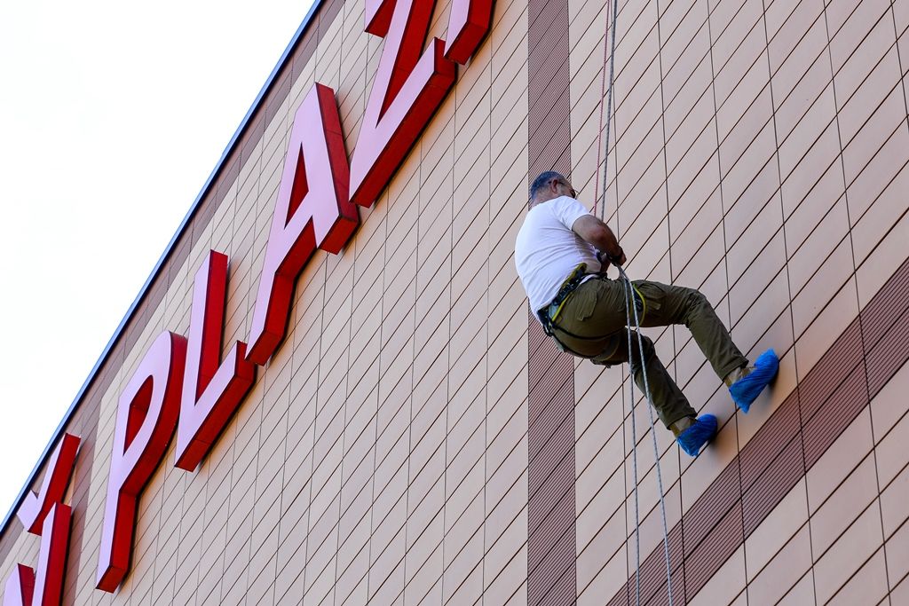 Slanění na zkoušku před pátečním slavnostním zahájením Letní Sportmanie Plzeň 2017 si dnes ze střechy OC Plzeň Plaza vyzkoušeli primátor města Plzně Martin Zrzavecký, radní pro oblast podpory podnikání a sportu Petr Chvojka a hejtman Plzeňského kraje Josef Bernard. Pod dohledem cestovatele a horolezce Jana Trávníčka, který má v rámci Sportmanie na starost lezecké sporty, zdolali výšku zhruba třiceti metrů.