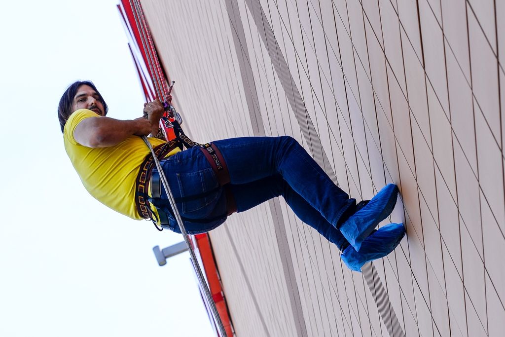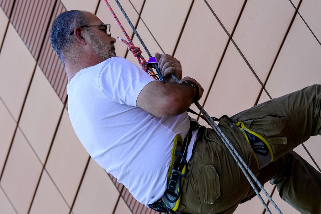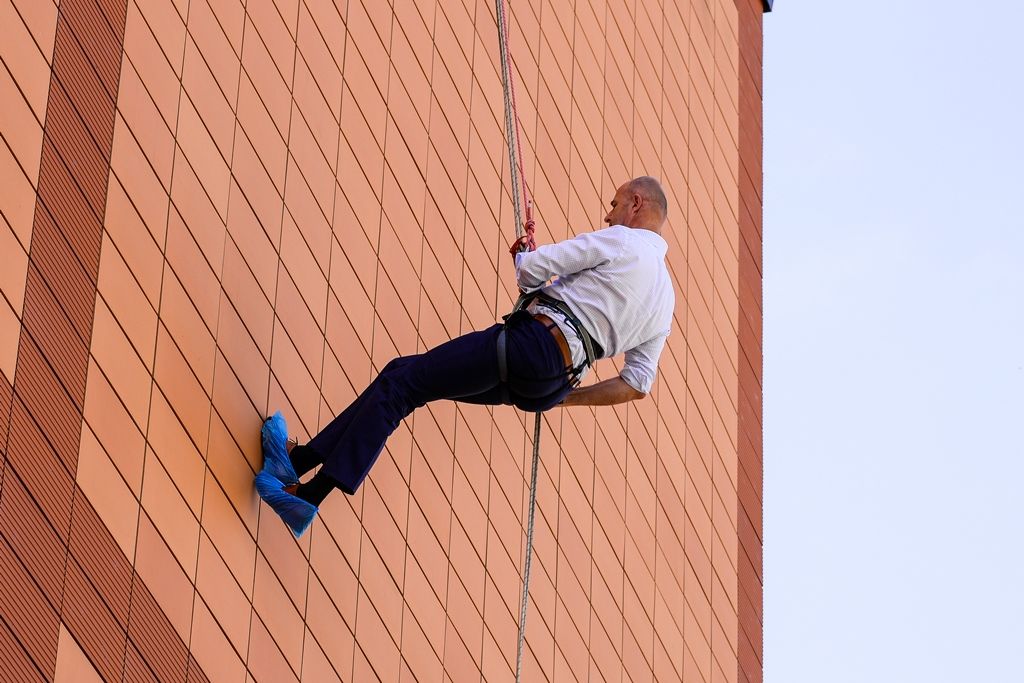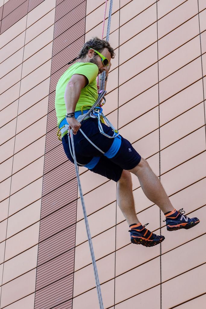 „Bylo to hodně zajímavé. Nahoře ve 30 metrech je ten adrenalin určitě pumpovaný do žil, mozek si umí vyhodnotit, že je to vysoko. Ale když už si potom sednete a začnete se odrážet od zdi, tak je to celkem hezký pocit,“ řekl plzeňský radní Petr Chvojka. I on absolvoval slaňování poprvé v životě.