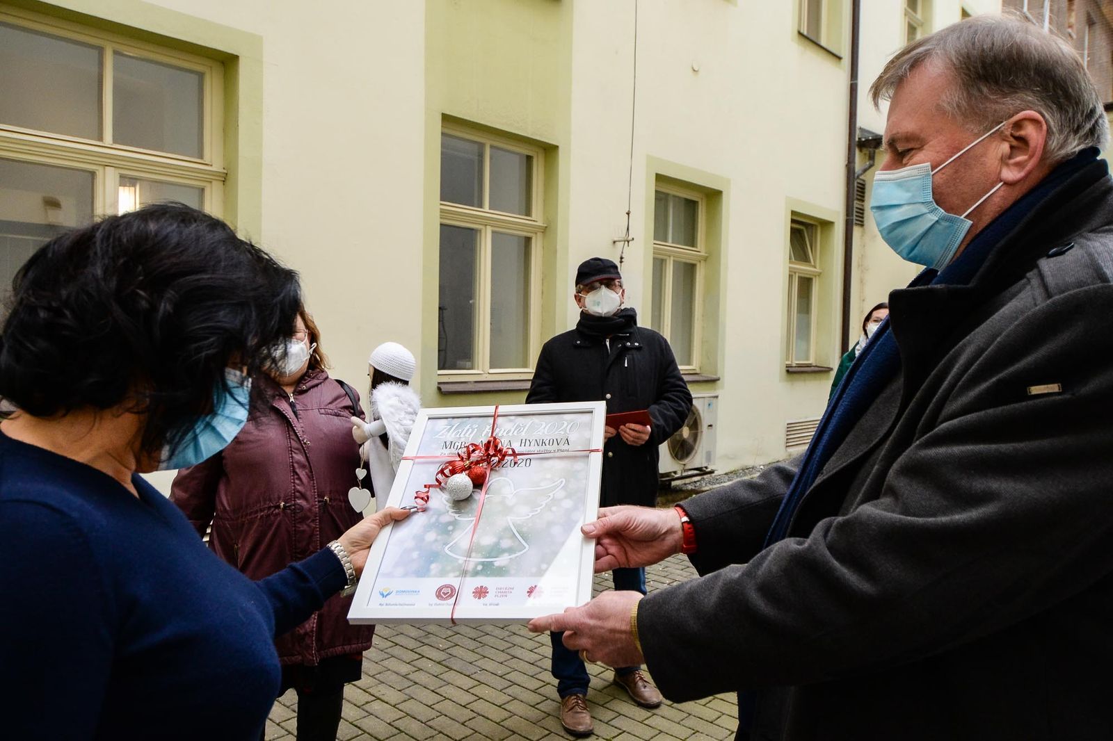 Cena Anděl je projekt, který uvedla v život už před čtrnácti lety právě Alena Hynková. Město Plzeň na slavnostním galavečeru v Měšťanské besedě vždy v závěru roku oceňuje dobrovolníky a pracovníky v sociálních službách. Udělovány jsou tituly Anděl, Andělské ruce, Dobrá duše a pak hlavní cena Zlatý Anděl. „Letos jsme s ohledem na mimořádná opatření spojená s koronavirovou krizí byli bohužel nuceni andělský slet, který se měl konat tento pátek 11. prosince v podobě, v jaké ho známe, zrušit. Nominovaní, kterých je letos rekordní počet, téměř 350, o uznání a ocenění nepřijdou. Připravujeme ve spolupráci s kanceláří primátora města Plzně na uvedený den on-line poděkování a následné předání certifikátů a darů. Jediná cena, které byla pro letošek zrušena, je titul Zlatý Anděl, takzvaná síň slávy plzeňských sociálních služeb. Hned ze dvou důvodů: zaprvé jsme nechtěli Zlatého Anděla připravit o jeho ceremoniál v plném lesku a pak především proto, že za mimořádné nasazení, obětavost a profesionalitu by za rok 2020 zasluhovali cenu nejvyšší snad všichni manažeři sociálních služeb, zejména těch pobytových. Proto jsem z toho, jak to nakonec dopadlo, hodně překvapená. Povedlo se jim všechno dokonale utajit, takže mě zaskočili, dojali, zbavili slov a já jim všem velmi, velmi děkuji, neboť je to obrovská poklona nejen pro mě, ale pro celý tým Odboru sociálních služeb Magistrátu města Plzně, který mám tu čest vést už jedenáct let,“ uvedla Alena Hynková.