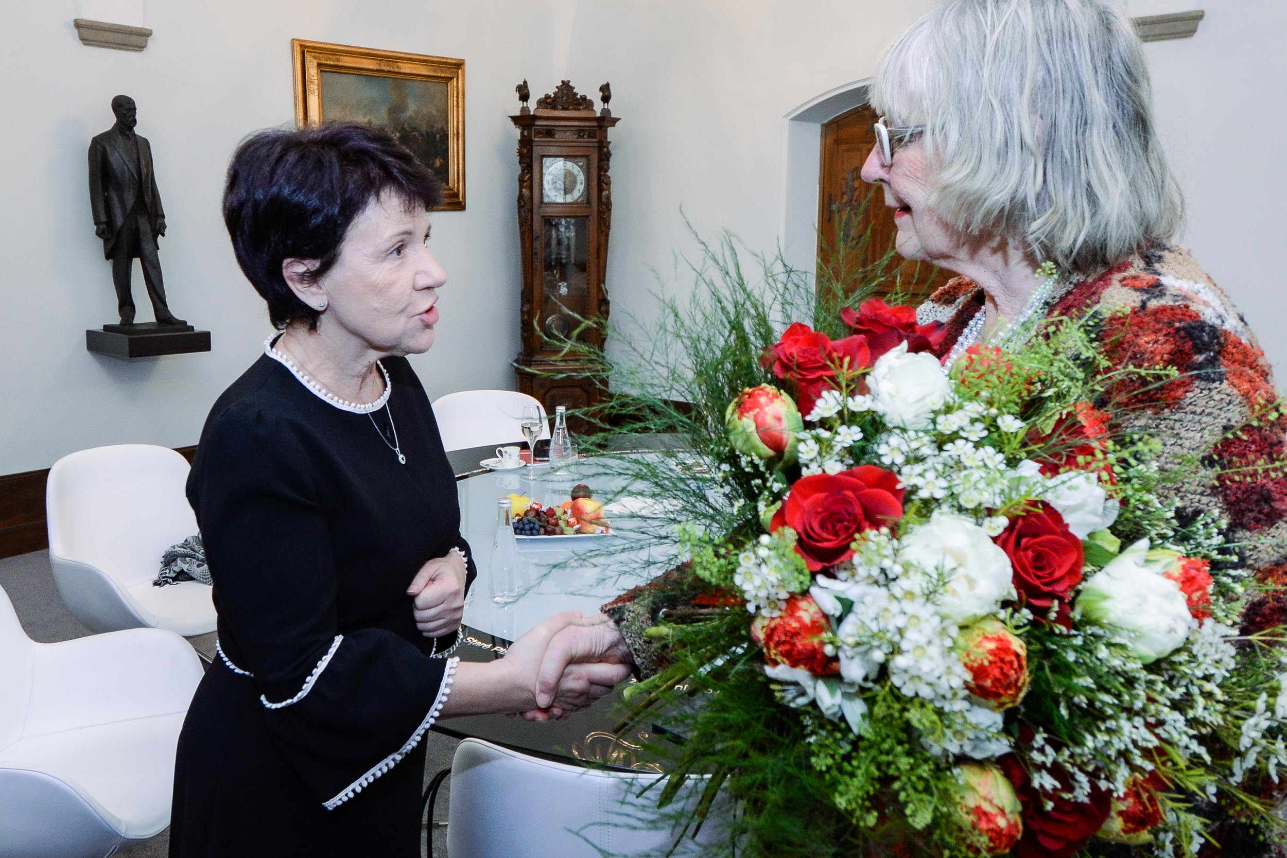 „Ti, kdo vás znají, říkali, že se mám na co těšit, neboť mě čeká milé setkání s mimořádnou dámou. Jsem rád, že vás mohu poznat,“ řekl na úvod setkání primátor Roman Zarzycký. Zajímal se o tvorbu Květy Monhartové, o to, jak oslavila půlkulaté narozeniny i o její další plány.