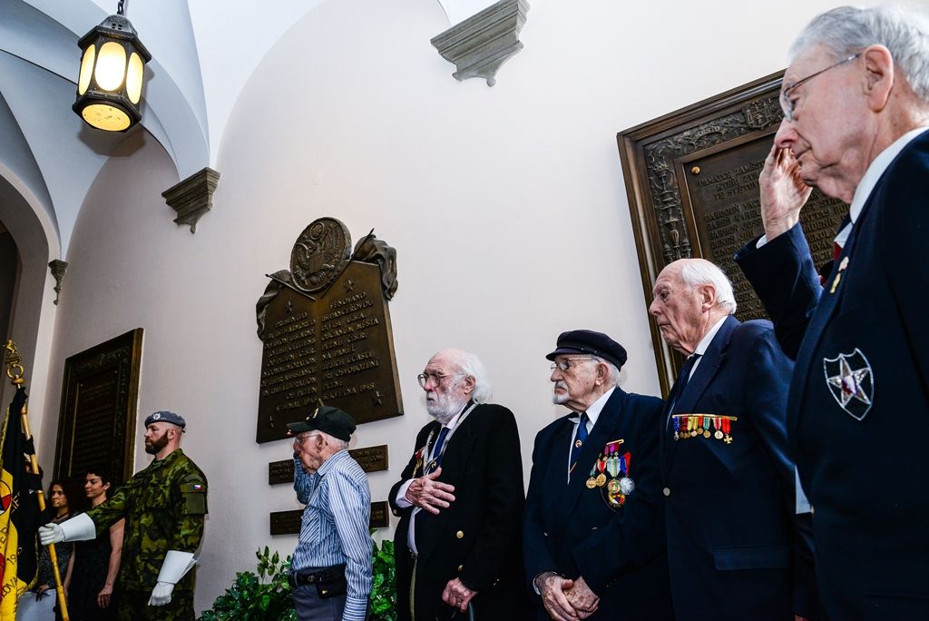 Zástupci amerického a belgického velvyslanectví se společně s primátorem a členy Rady města Plzně zúčastnili pietního aktu u pamětní desky Bratrstva 17. praporu belgických střelců a desky věnované 16. obrněné divizi americké armády na radnici, kde položili na památku obětím války věnce a květiny.