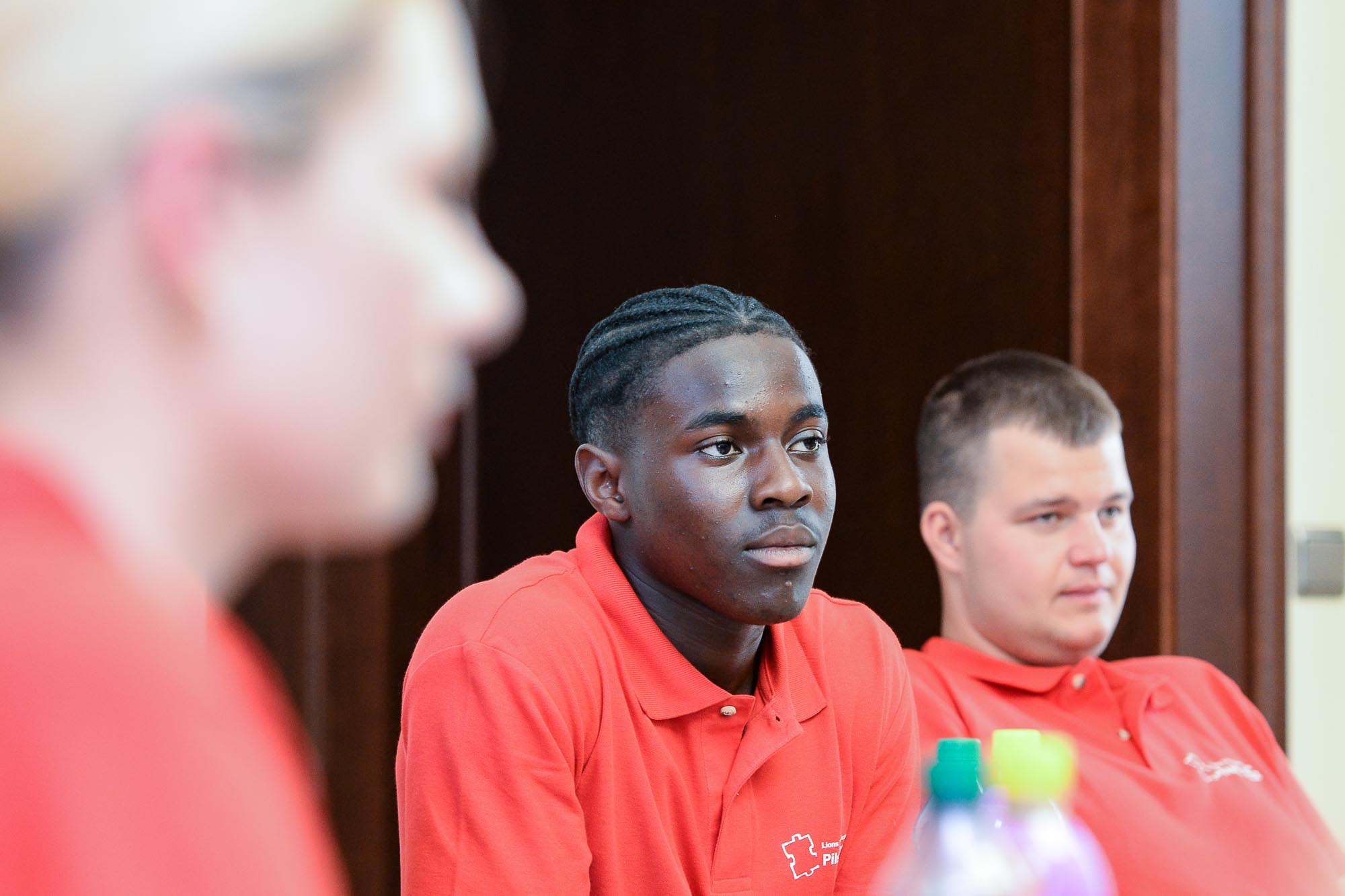 „Vítám vás v Plzni a jsem rád, že jste si udělali čas na setkání,“ přivítal účastníky kempu primátor. Zajímal se o to, odkud do Plzně přijeli, jak kemp probíhá, co je v Plzni zaujalo a jaké další plány mají.