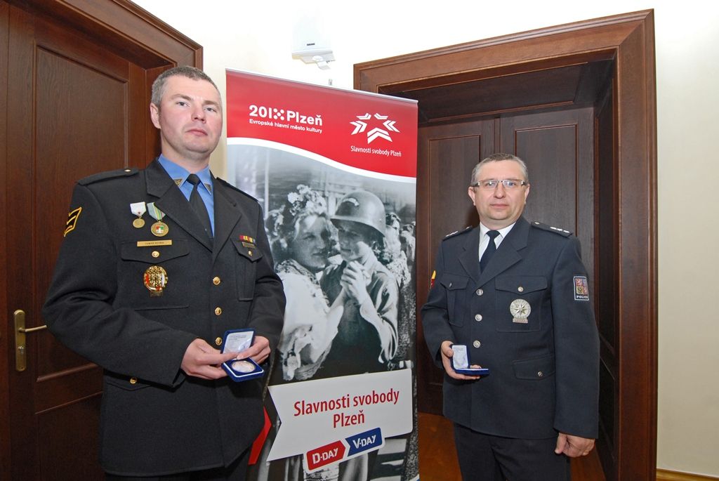 Primátor města Plzně Martin Zrzavecký dnes poděkoval za spolupráci na Slavnostech svobody Policii ČR a Městské policii Plzeň. Ocenil velitele obou složek, kteří měli letošní, rozsahem i návštěvností mimořádné, oslavy na starost. Za státní policii si speciální medaili převzal Karel Machulda, jemuž byli při šestidenní akci podřízeni všichni plzeňští policisté podílející se na oslavách, za městskou policii ocenění převzal Tomáš Petřík, jenž měl pod sebou všechny strážníky. Oba muži se na opatřeních při Slavnostech svobody podílejí dlouhodobě, Karel Machulda již 21 let, Tomáš Petřík 15 let.