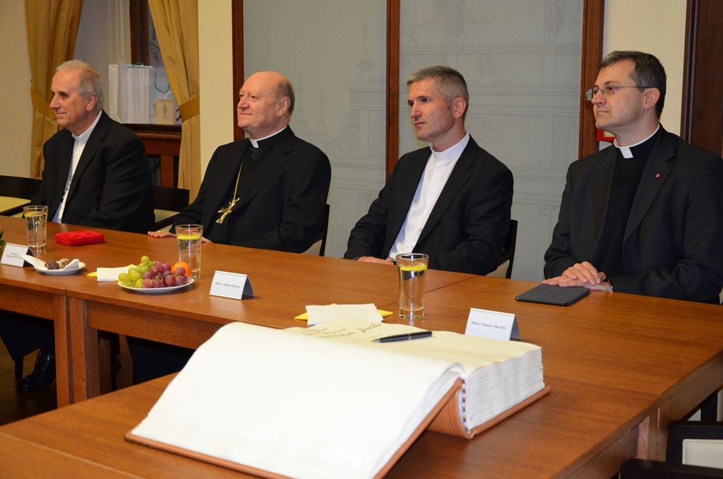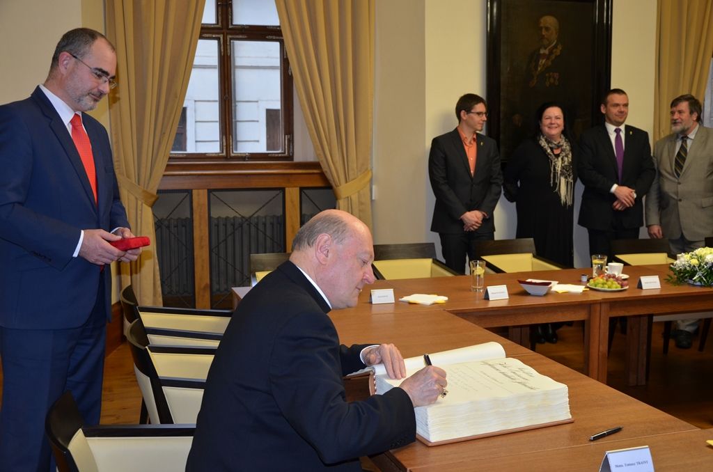 „Spolupráce mezi církví a plzeňskou radnicí funguje na velmi přátelské a úzké bázi. Je to zásluha otce biskupa,“ uvedl primátor Martin Zrzavecký. Podle něj si město velmi váží plzeňského biskupa Františka Radkovského. „Mohu-li to tak říci, tak jsme na jedné vlně. Nacházíme se nyní ale ve velmi složité době, Evropa zažívá, co neočekával nikdo. Jako město kultury hovoříme o kultuře hodně, ale události posledních dní nás nutí se více zabývat otázkou hodnot, které si budovala Evropa po dlouhá staletí,“ doplnil primátor. Zmínil zejména hodnoty rodiny, společnosti. „Musíme mít vize, přání, ale musíme také respektovat hodnotu svobody,“ řekl. Za město, tedy i za všechny Plzeňany, předal kardinálovi Pečeť města Plzně.