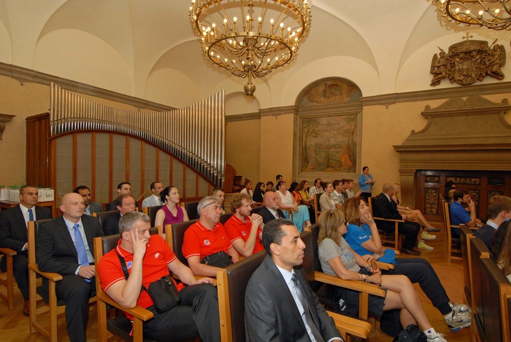 Zástupci týmů basketbalového mistrovství světa žen do 17 let i Mezinárodní a České basketbalové federace přijali pozvání primátora Martina Baxy a společně se sešli v obřadní síni plzeňské radnice.