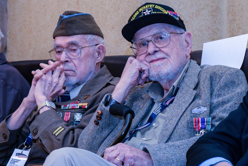 V podvečer přijali primátor Martin Baxa, radní Lucie Kantorová a radní Vlastimil Gola americké a belgické veterány s jejich rodinami v Obřadní síni plzeňské radnice. „Letos si připomínáme nejen 75 let od vylodění v Normandii 6. června 1944, ale také 30 let od změny režimu v naší zemi a možnosti se vám poklonit a poděkovat za vaše osvobození. Rok 1945 a 1989 spojuje svoboda, kterou jste nám přinesli. Děkuji vám, že jste přijeli,“ připomněl na recepci s veterány Martin Baxa.
