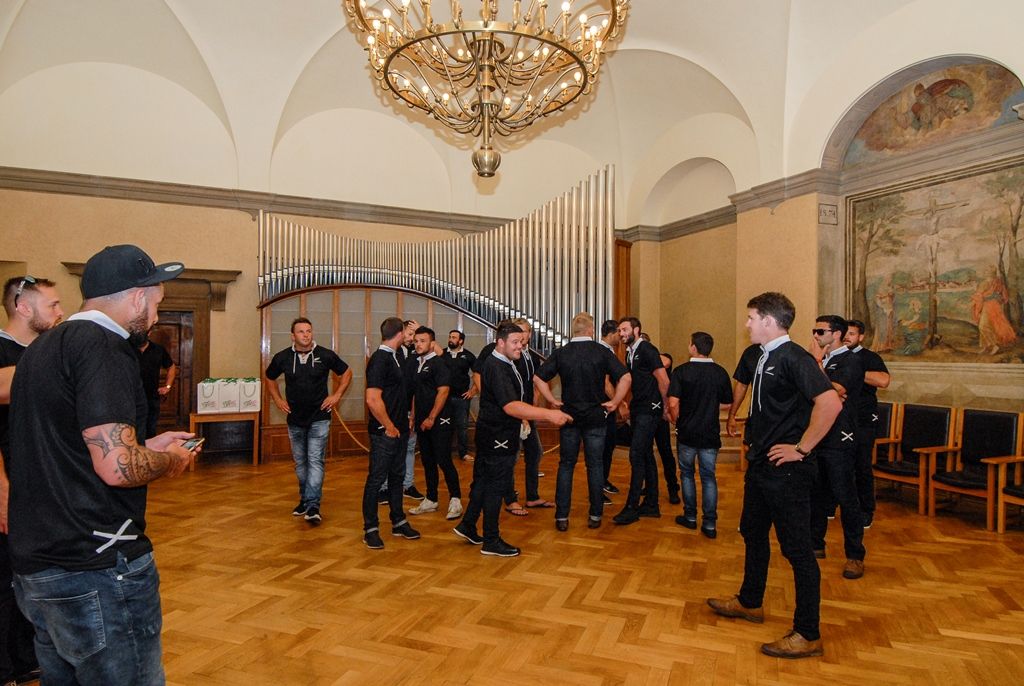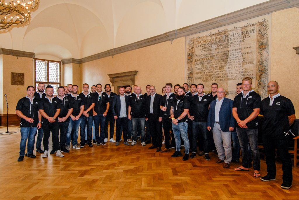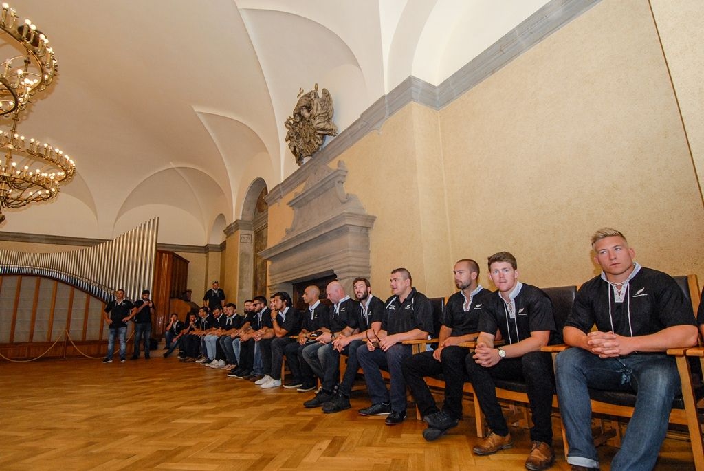 Novozélandský ragbyový tým navštívil západočeskou metropoli, na plzeňské radnici ho přivítal primátor města Martin Zrzavecký. „Vítejte v našem krásném, historickém městě, Plzeň je nejen městem piva, ale i městem sportu. Jsme několikanásobní držitelé fotbalového titulu, stejně tak tu dobře hrajeme hokej a nesmíme zapomenout, že jsme již poněkolikáté získali mistrovský titul v házené,“ představil v úvodu primátor město Plzeň po sportovní stránce. Také uvedl, že i když není ragby v České republice příliš rozšířené, aktuálně se v Plzni jedná o vzniku zázemí právě pro tento sport a jeho další rozvoj.