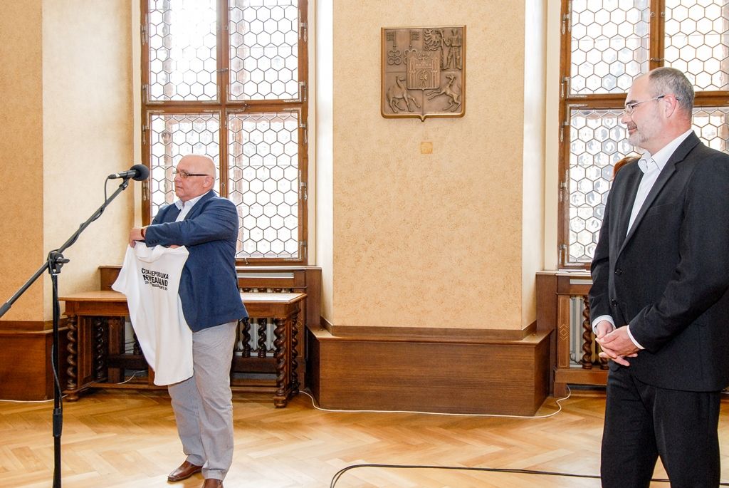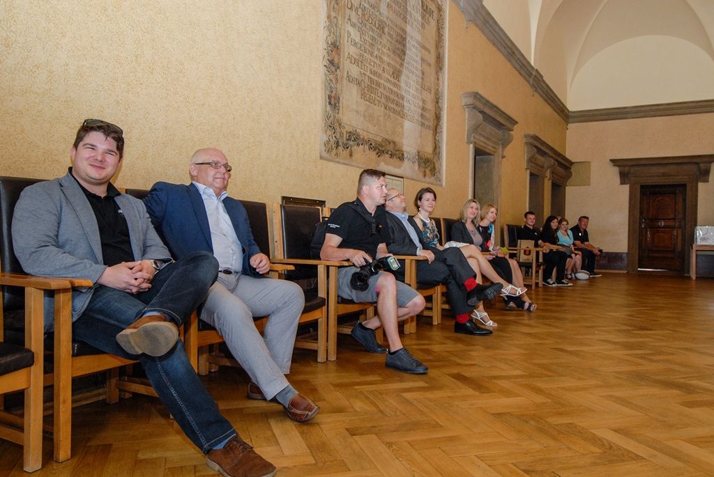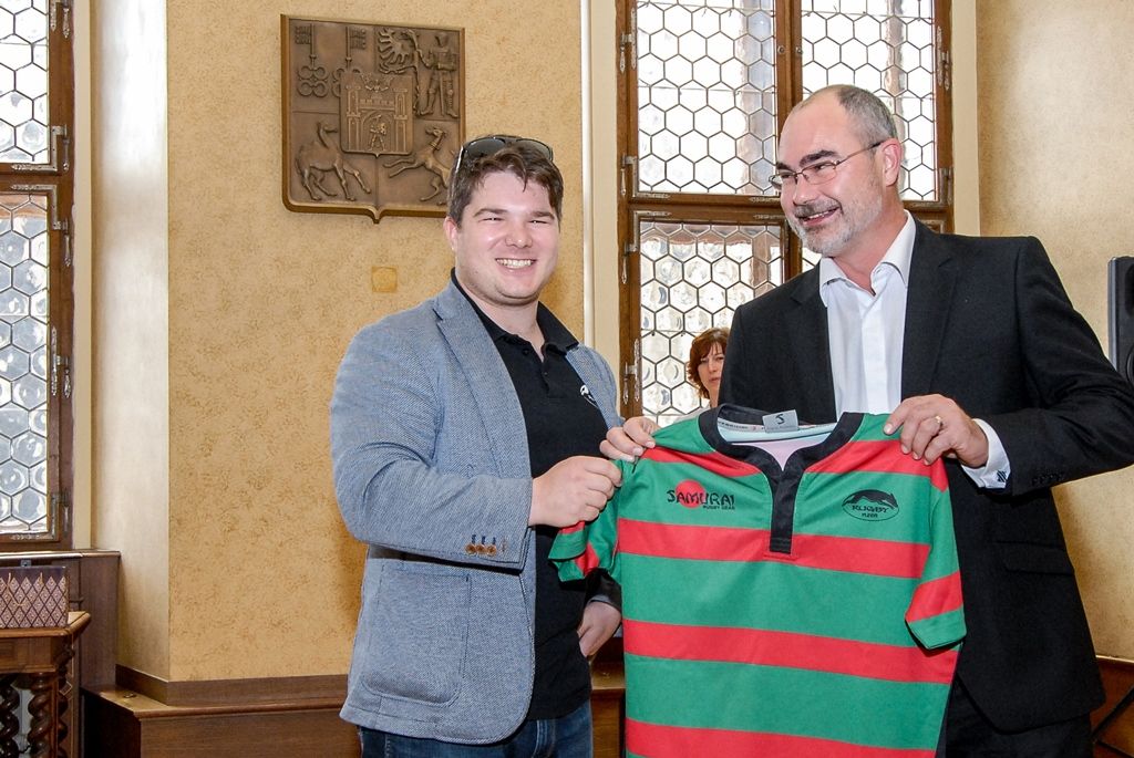 Setkání v obřadní síni se zúčastnili také zástupci Rugby Club Plzeň, kteří primátorovi města darovali klubový dres a pozvali ho na čtvrteční trénink.
