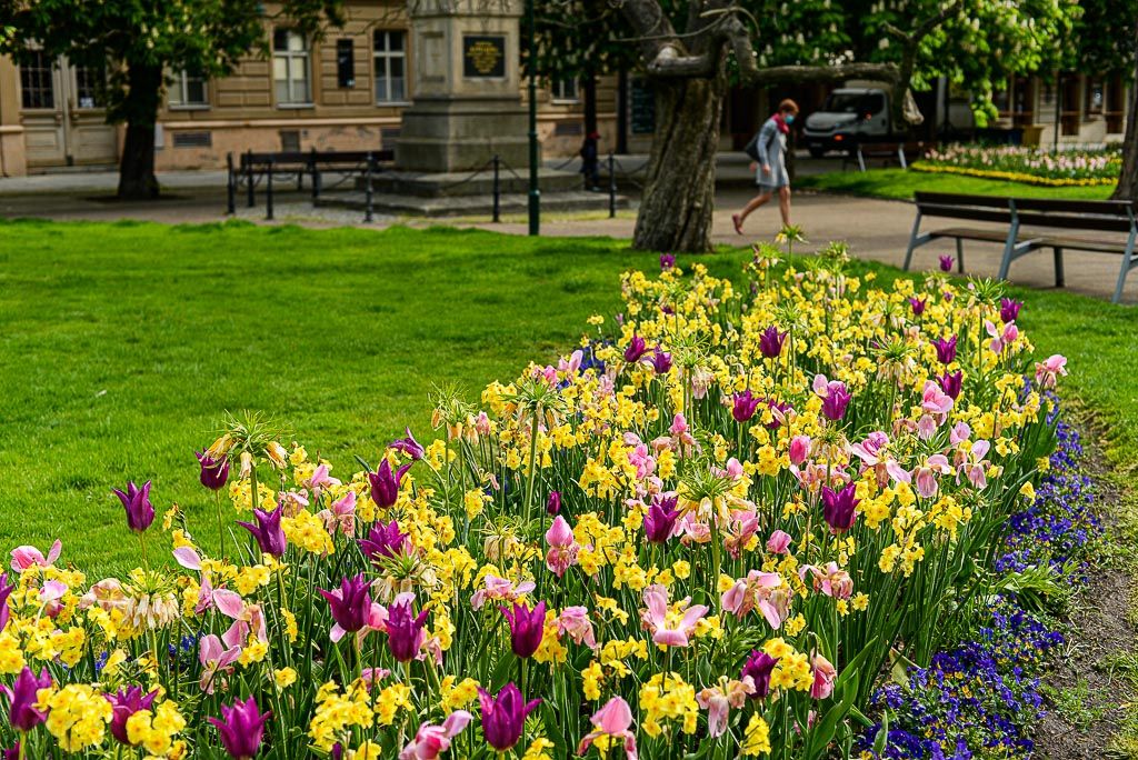 Správa veřejného statku města Plzně i v letošním roce vysázela pestrou paletu jarních cibulovin a dvouletek, které mohou obdivovat Plzeňané i návštěvníci v sadovém okruhu historického jádra. V současnosti nejnápadnější květy mají tulipány. Barevnou škálu doplňují narcisy v pastelových tónech od bílé až přes světle žlutou, jasně žlutou či žlutou s oranžovým středem.