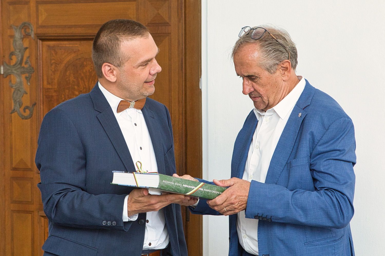 Hned nad prvním darem se primátorovi Martinu Baxovi dostalo krátké přednášky o Odlezském jezeře. Bohumír Janský totiž od něj převzal takzvaný císařský otisk (mapa katastrálních území z první poloviny 19. století) jeho rodných Mladotic a současný letecký snímek této obce. „A tady pak roku 1872 vzniklo Odlezské jezero. V tom roce spadlo na našem území obrovské množství srážek. Způsobily sesuv skal a ty přehradily Mladotický potok,“ začal vyprávět Bohumír Janský a pokračoval. Vznik Odlezského jezera byl totiž tématem jeho diplomové práce a věnuje se mu dodnes. K 150. výročí jeho vzniku připravuje naučnou stezku. A velmi ho potěšil i další dar – dres fotbalistů plzeňské Viktorky, s nápisem Janský a číslem 70. Hned začal vyprávět historky, které se mu jako zarytému Viktoriánovi přihodily s fanoušky Sparty na Letné.