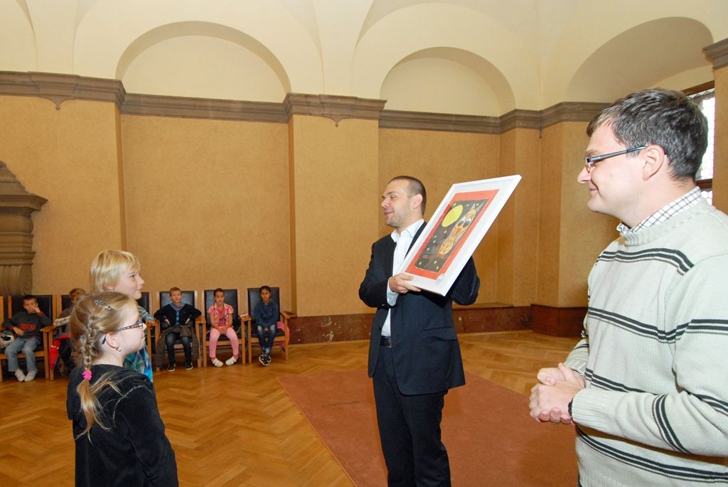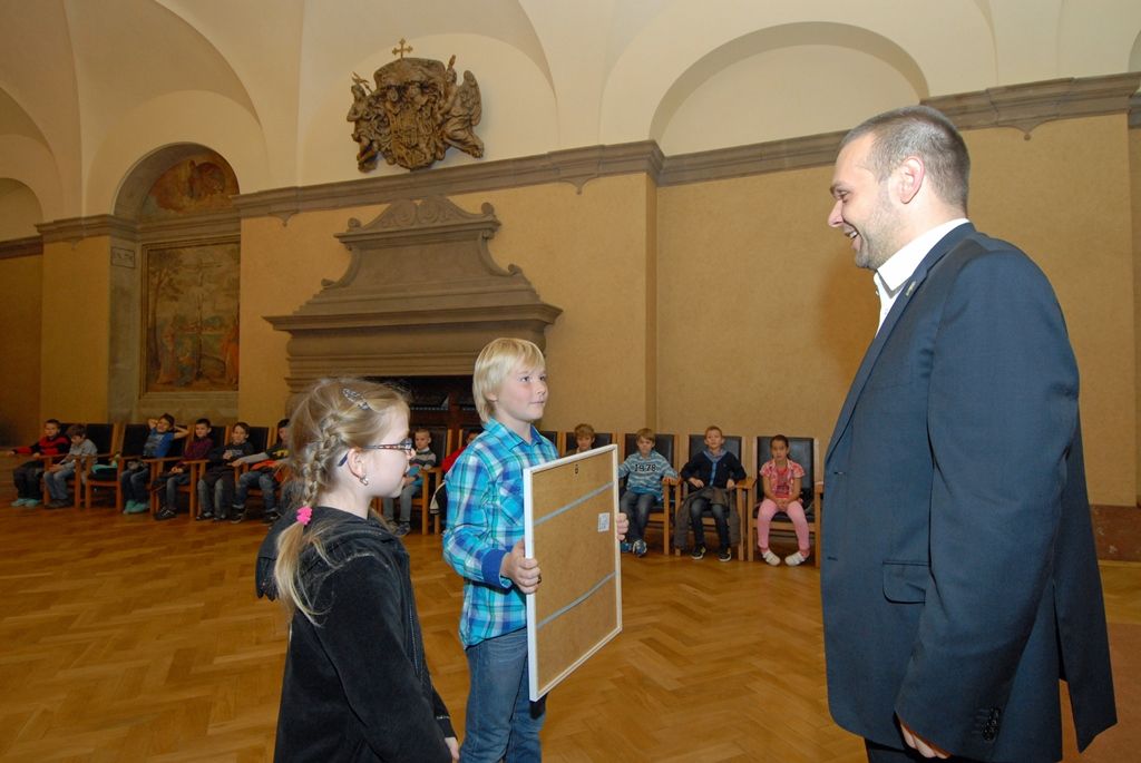 Pod palbou otázek šestatřiceti dětí ze dvou třetích tříd základní školy v Habrmannově ulici se ocitl v úterý ráno primátor Martin Baxa. Žáci navštívili plzeňskou radnici, aby se blíže seznámili s její historií v rámci projektu, ve kterém poznávají svoje město. Přání setkat se s primátorem Martinem Baxou se jim splnilo, a proto mu ještě před vyprávěním o městě předali dárek v podobě obrázku se sovou. „Abyste měl hodně moudrosti, pane primátore,“ zaznělo při předání. Bezprostřední primátorovou reakcí na dárek byla slova: „Bude se jmenovat Martin“.
